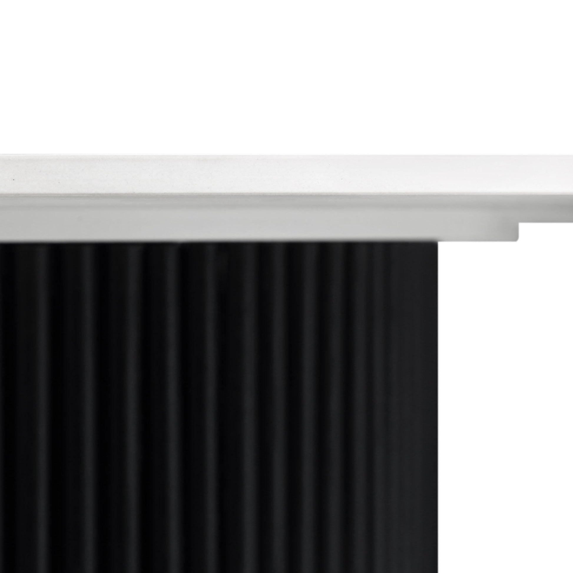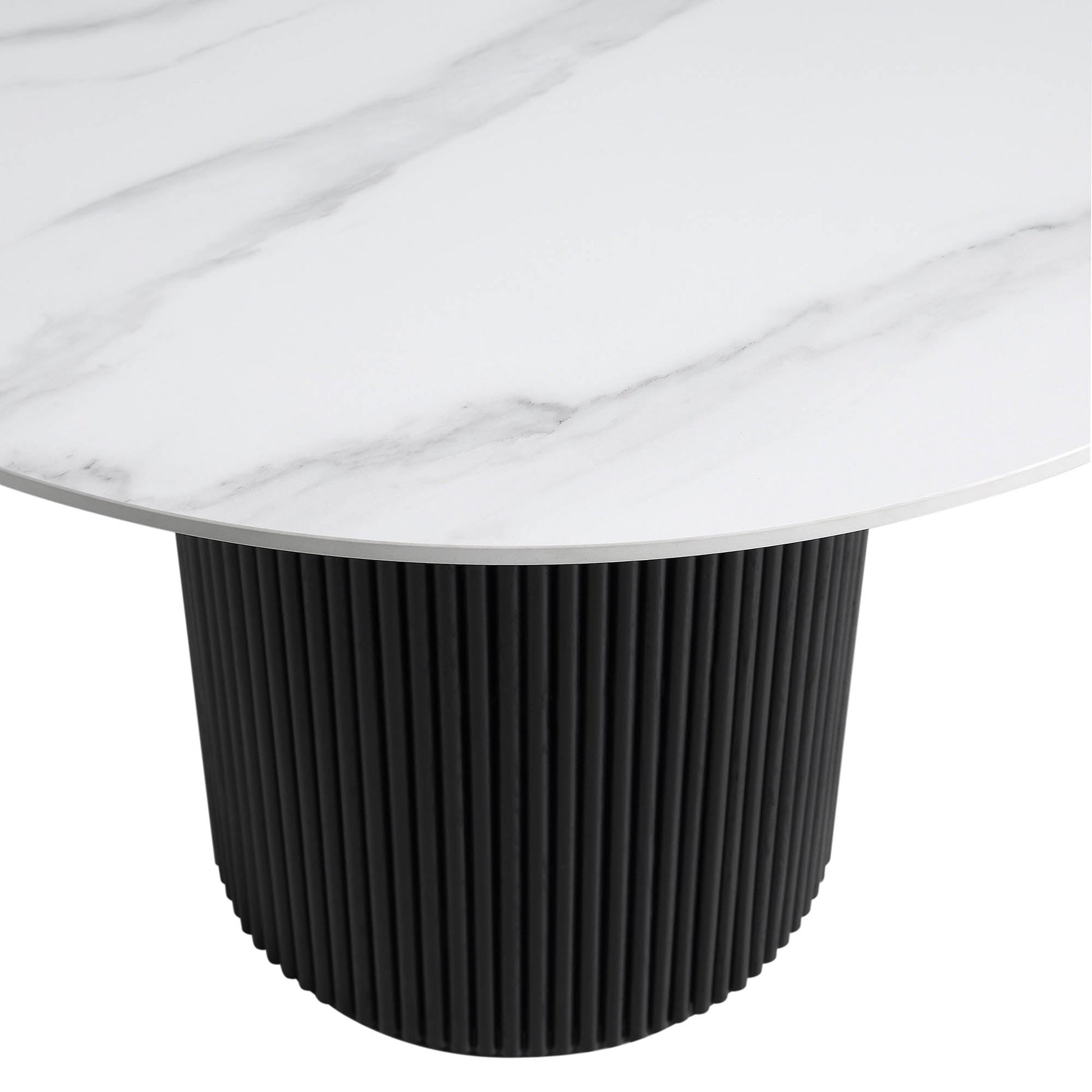 - Notre table à manger Maru très appréciée est désormais disponible en noir avec un design amélioré de base de piédestal cannelé et de plateau de table en céramique.