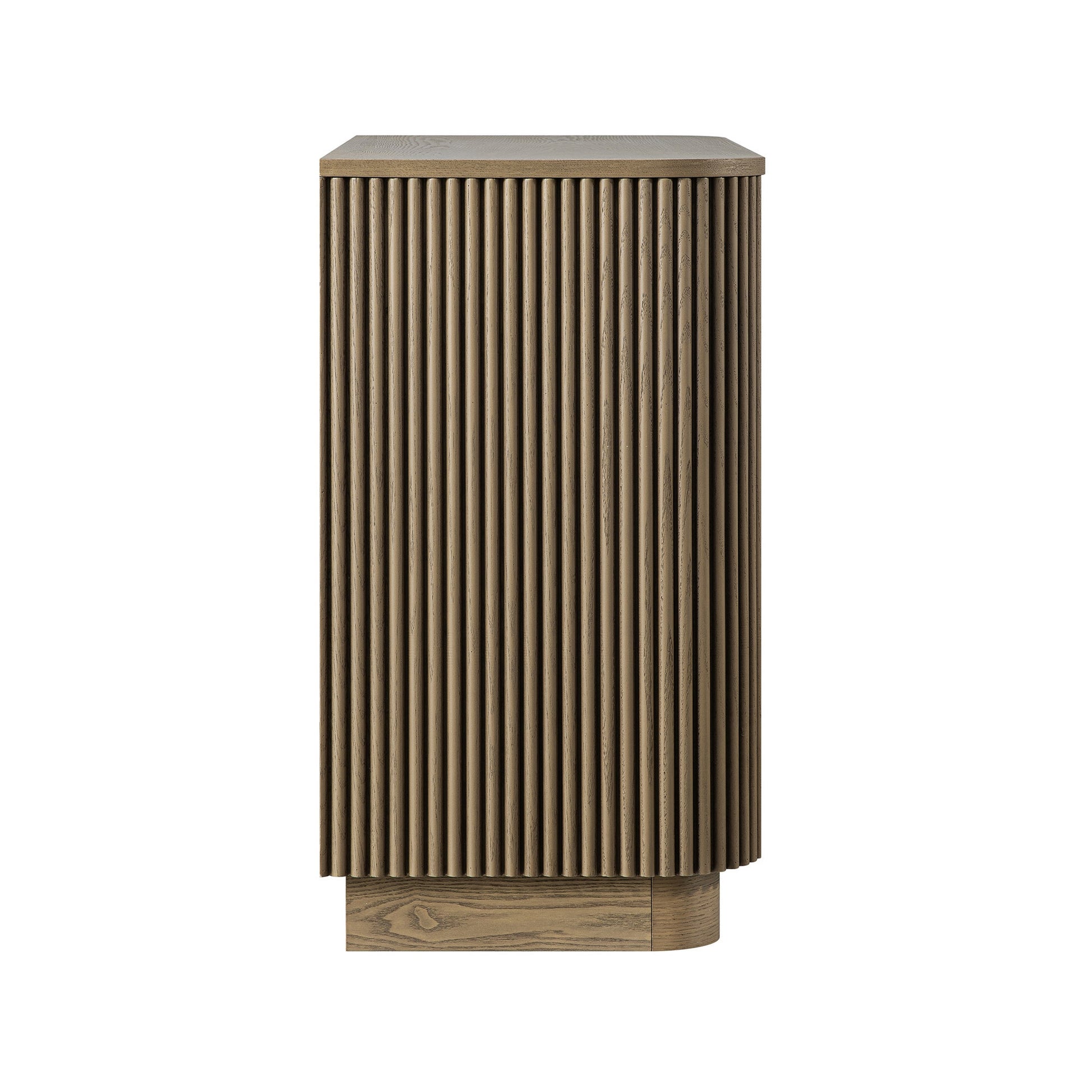 - Le coffre est conçu avec des cannelures en frêne massif sur 3 surfaces verticales, y compris l'avant et les deux côtés, pour un look bien arrondi.