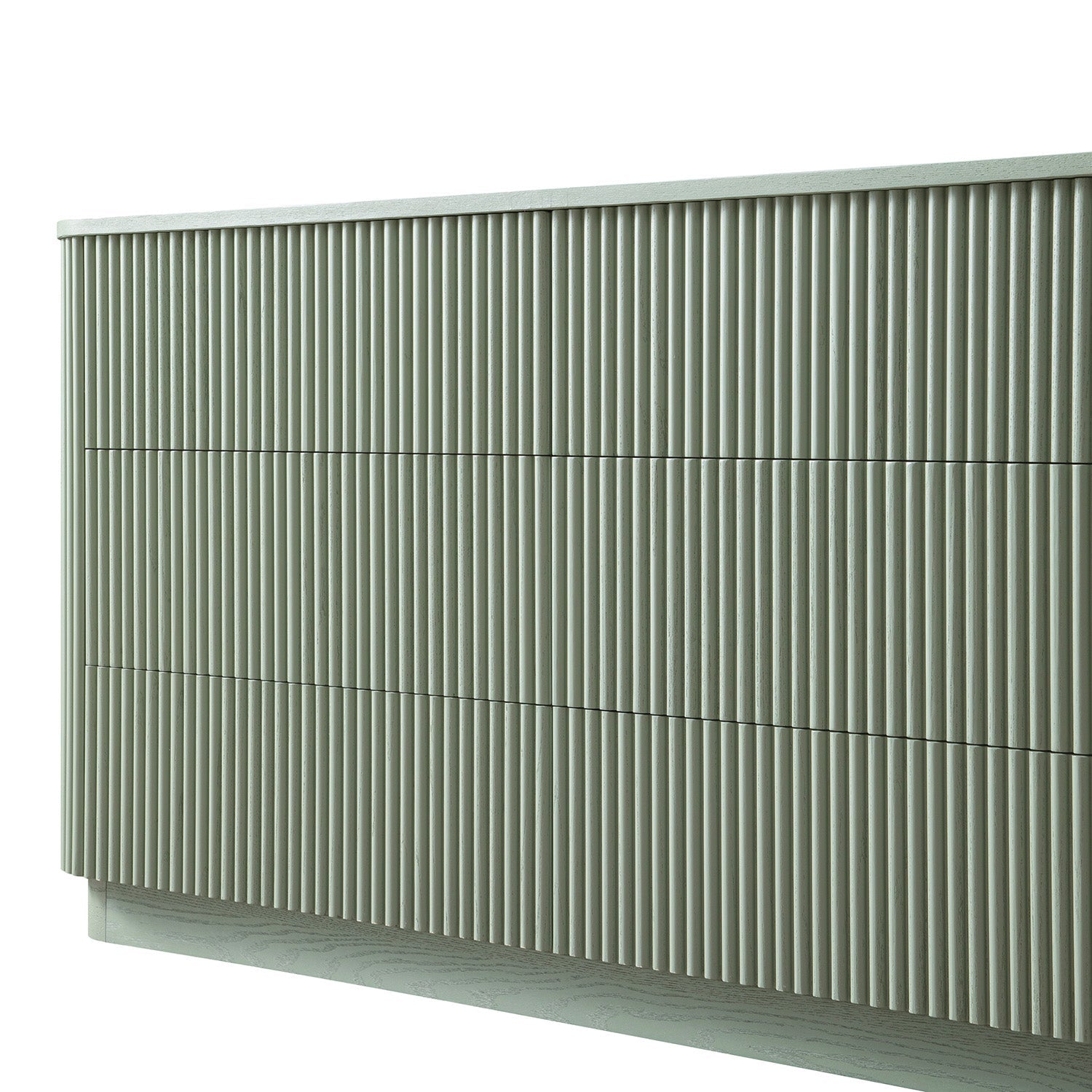 - Les façades des tiroirs cannelés et les coins arrondis créent un intérêt subtil, tandis que la finition vert sauge offre un calme botanique ancré qui se marie facilement avec les tons neutres et boisés.