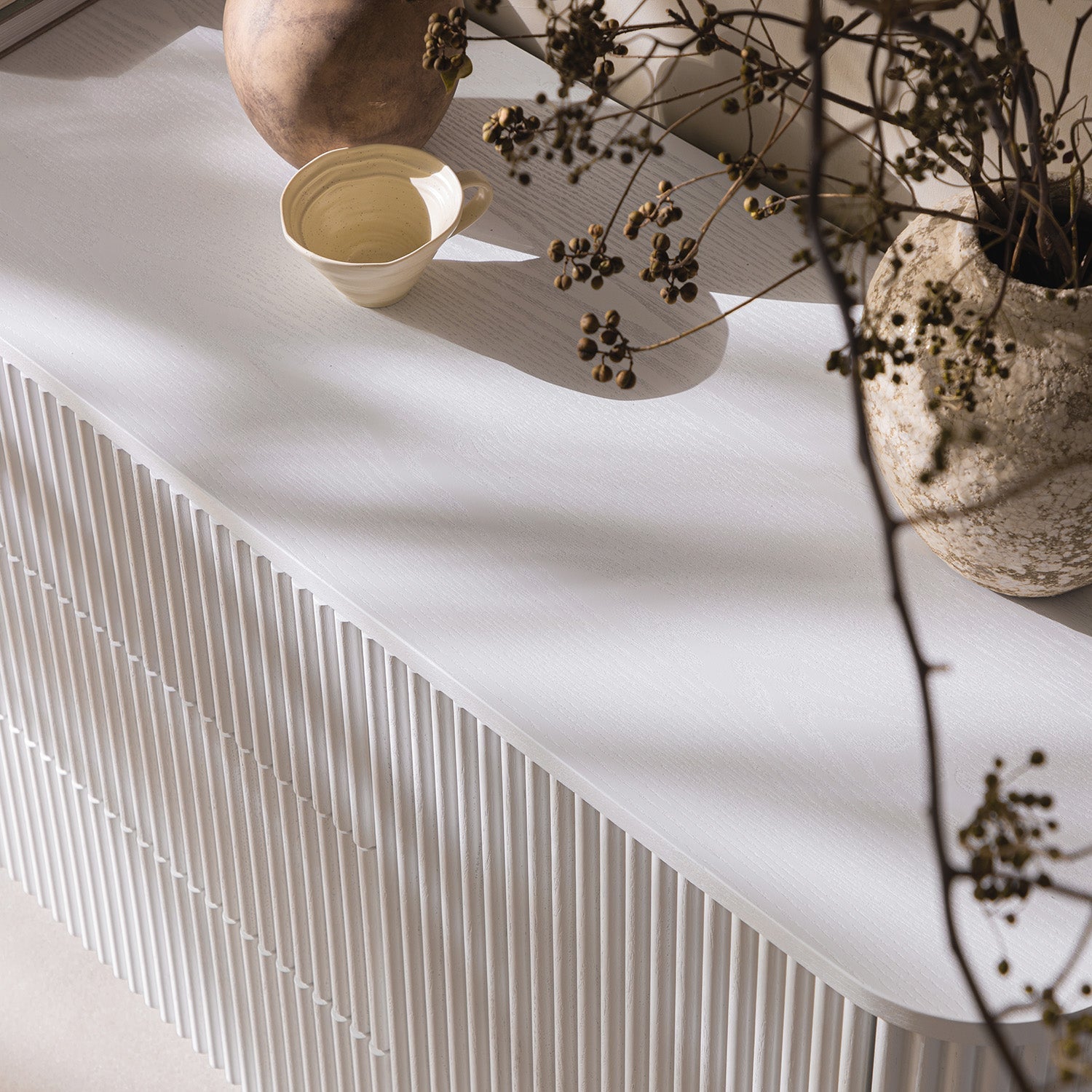 - Épuré et sophistiqué, notre buffet Maru en blanc délavé est une pièce de rangement raffinée qui apporte calme, clarté et structure à votre espace de vie ou de salle à manger.