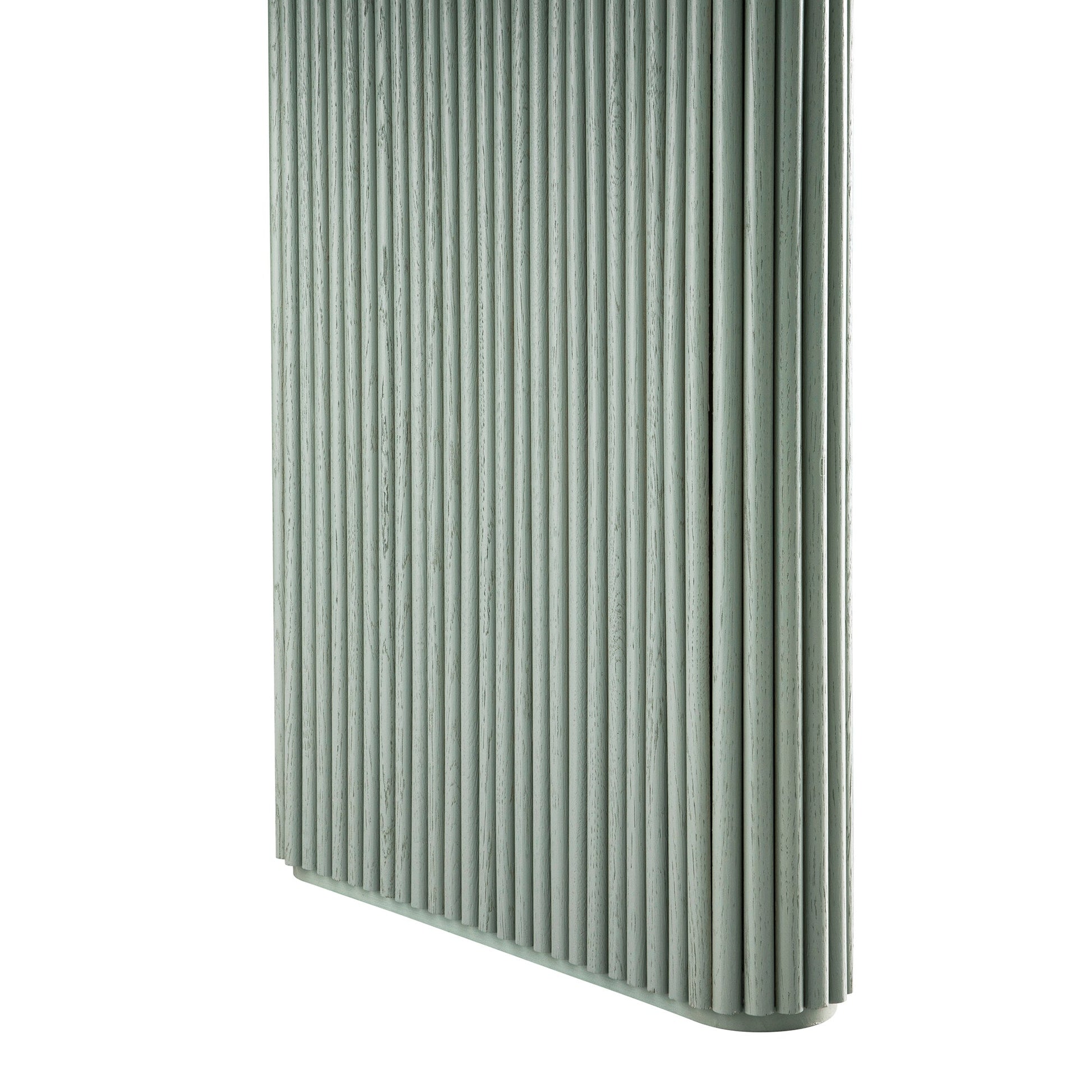 - Fabriquée en bois massif et en placage de chêne et finie avec une peinture vert sauge, chaque table possède ses grains et nœuds naturels uniques.
