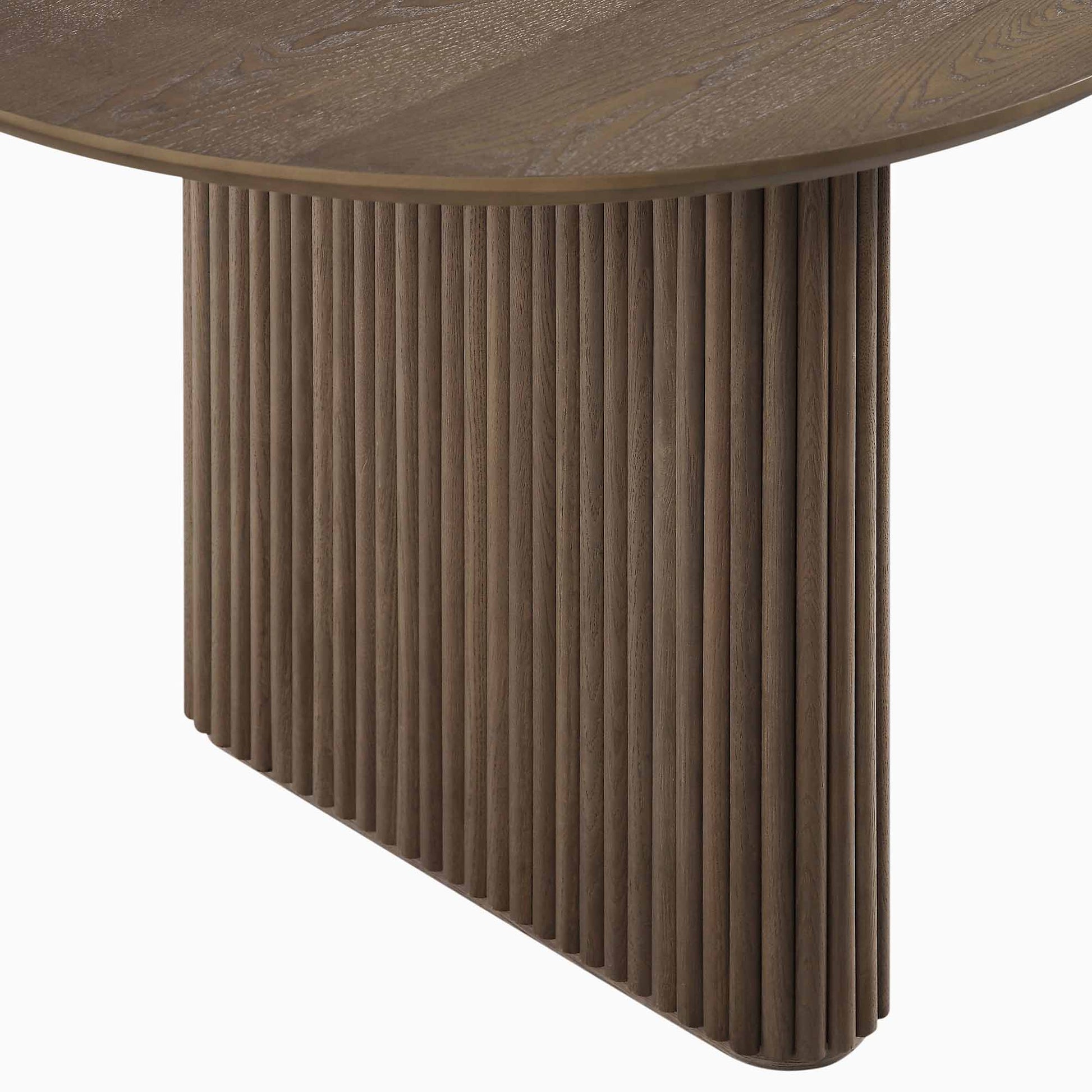 - Notre table à manger Maru arbore un style Japandi contemporain avec un piètement cannelé en chêne massif. Grâce à sa conception extensible, elle peut accueillir jusqu'à 8 personnes.