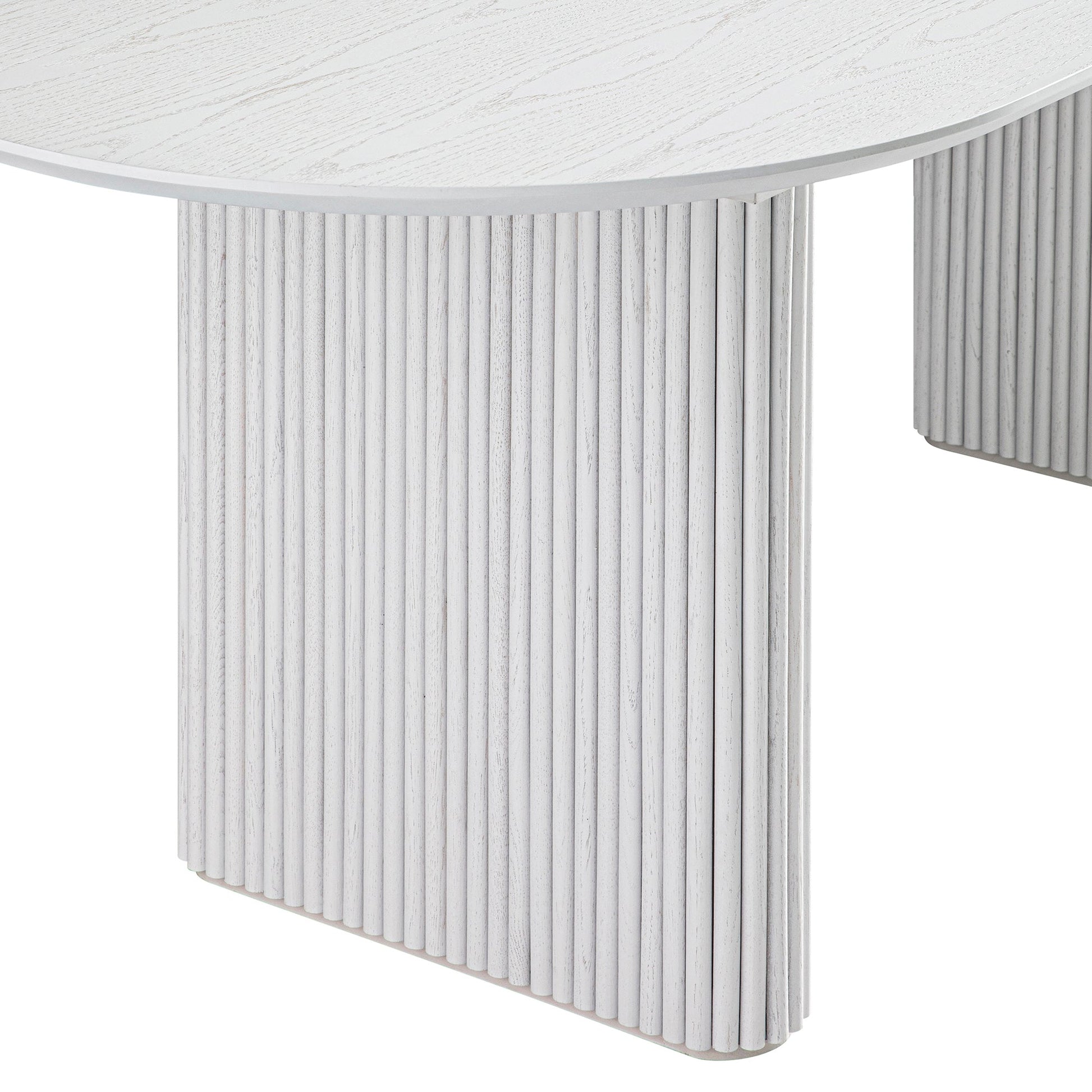 - Notre table à manger Maru arbore un style Japandi contemporain avec un piètement cannelé en chêne massif. Grâce à sa conception extensible, elle peut accueillir jusqu'à 8 personnes.