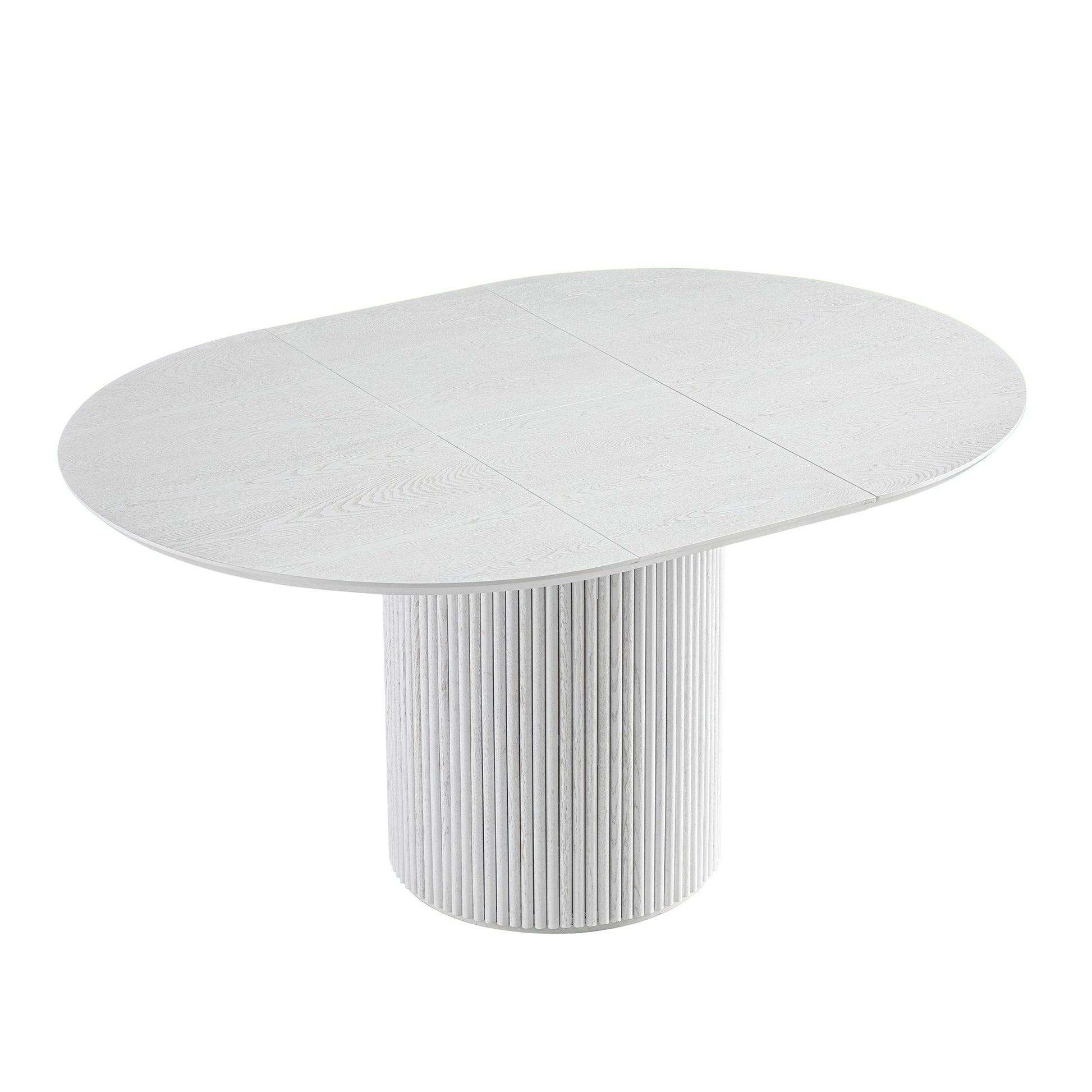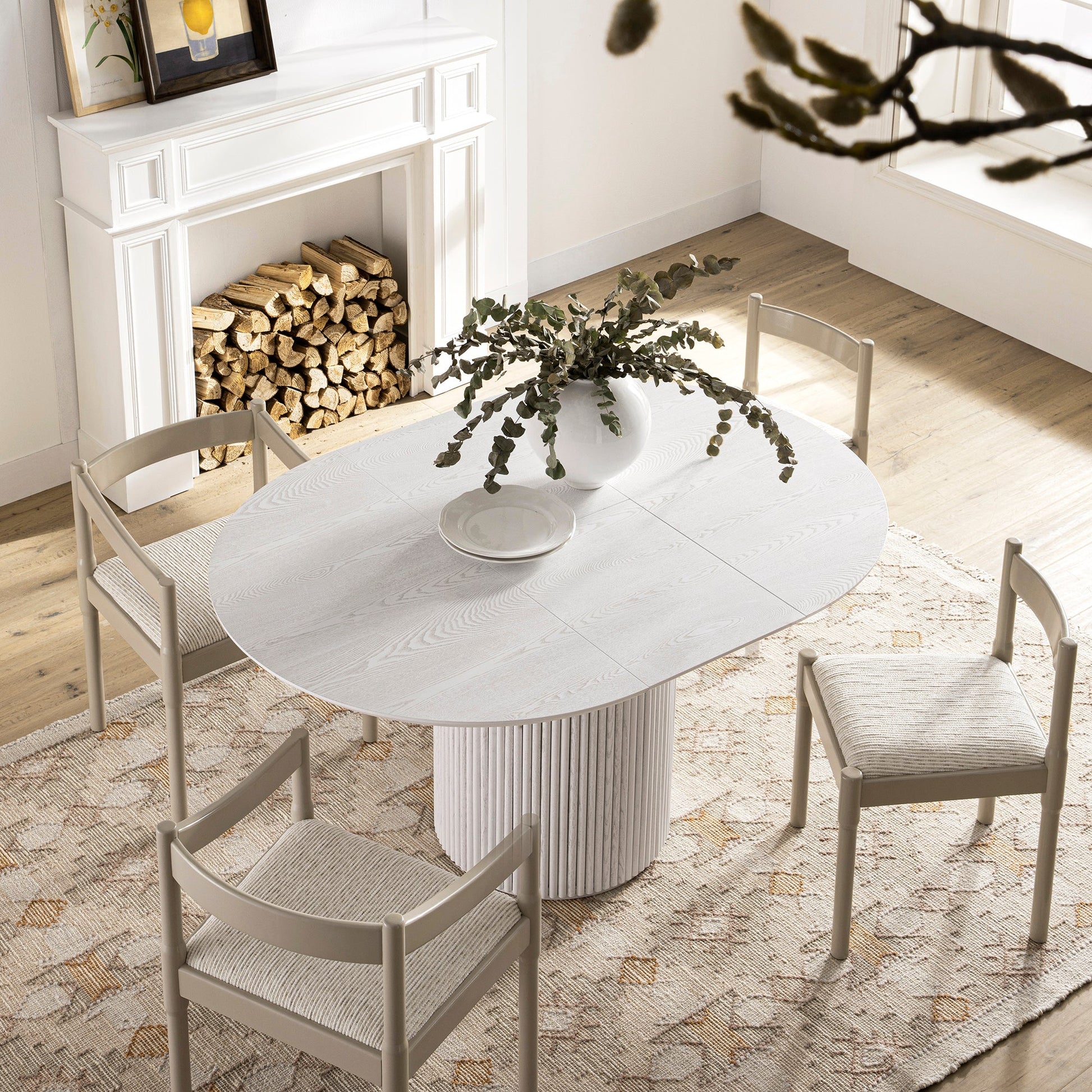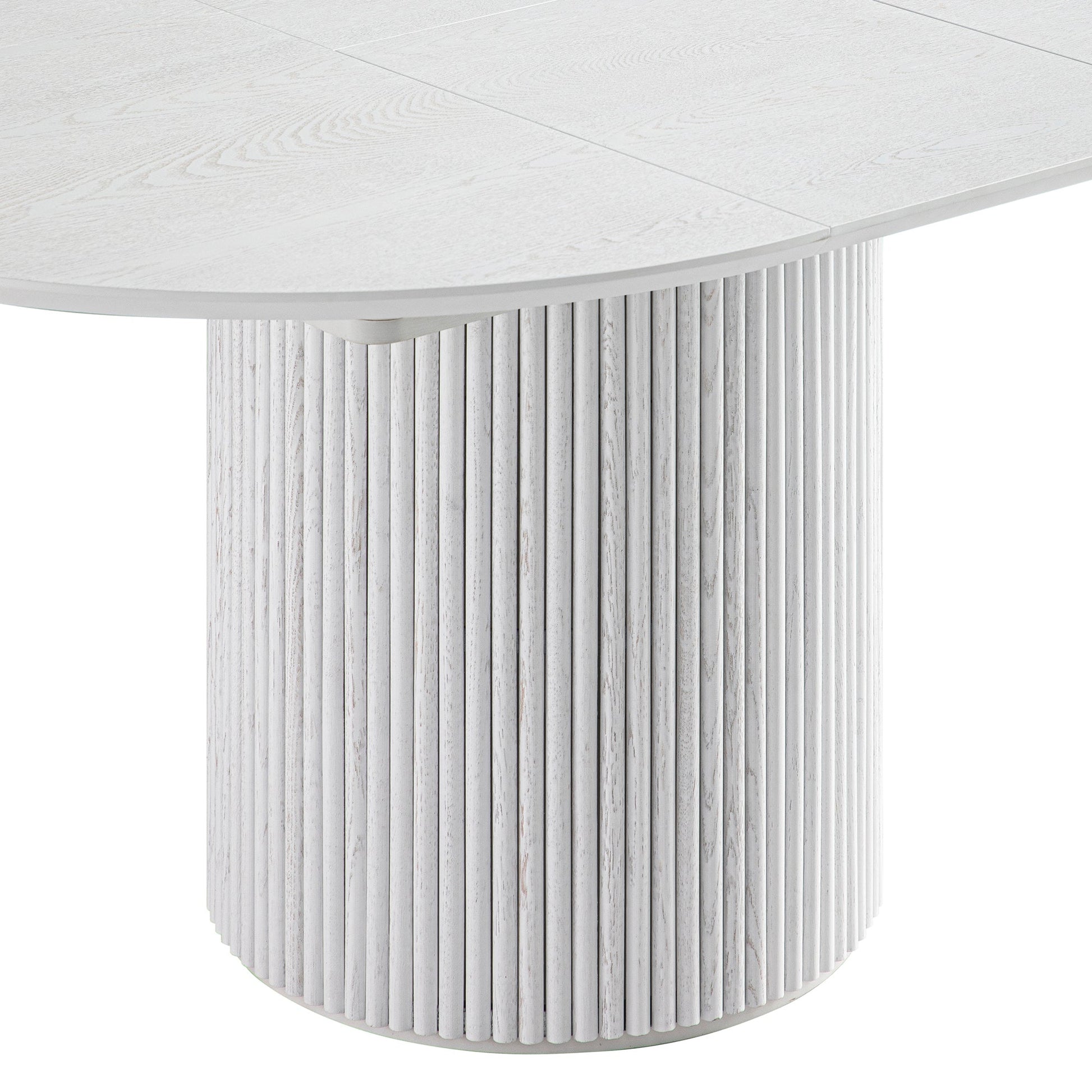 Table à manger ronde extensible Maru 4 à 6 places avec piédestal en chêne, blanc délavé