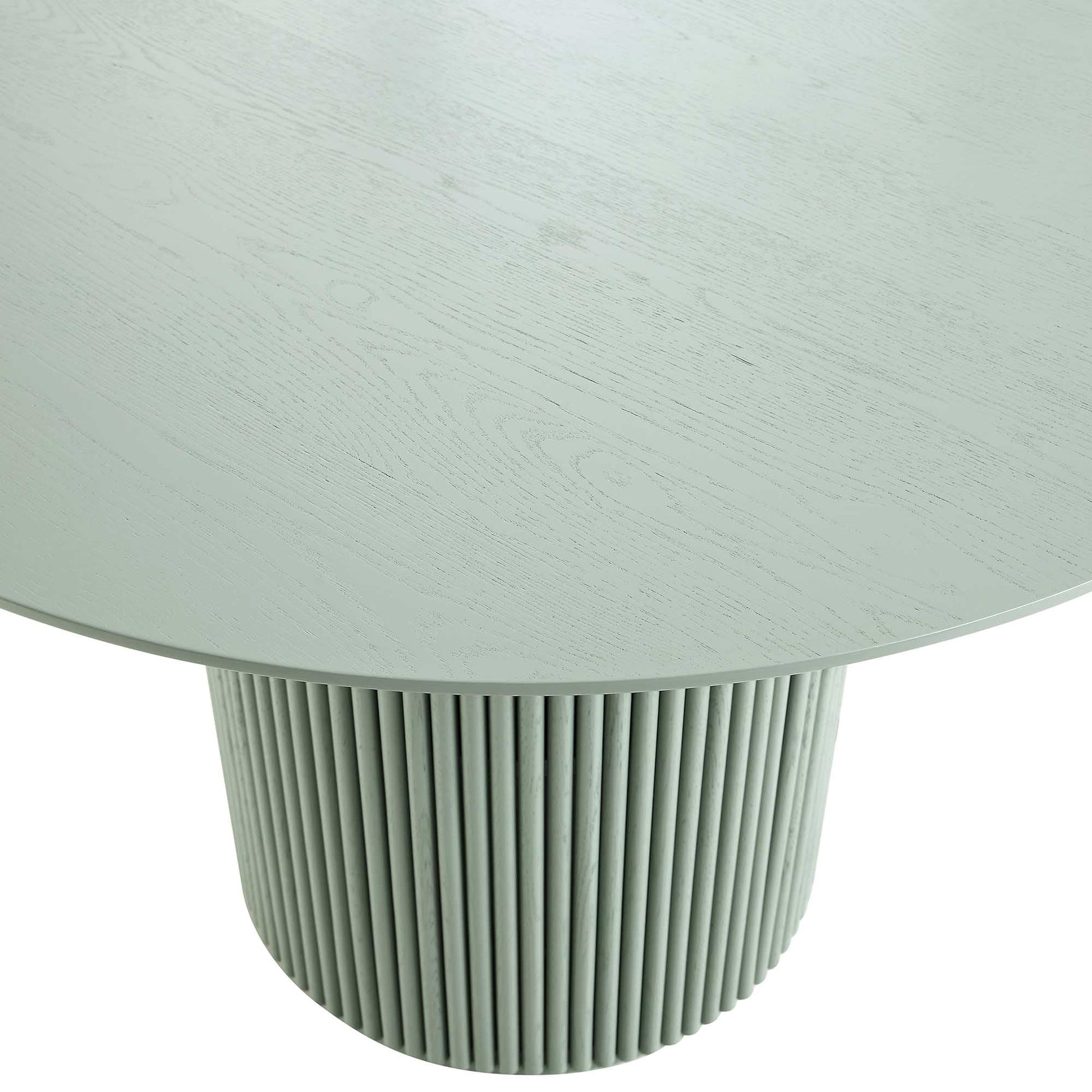 - Notre table à manger Maru présente un style Japandi contemporain avec une base cannelée en chêne massif.