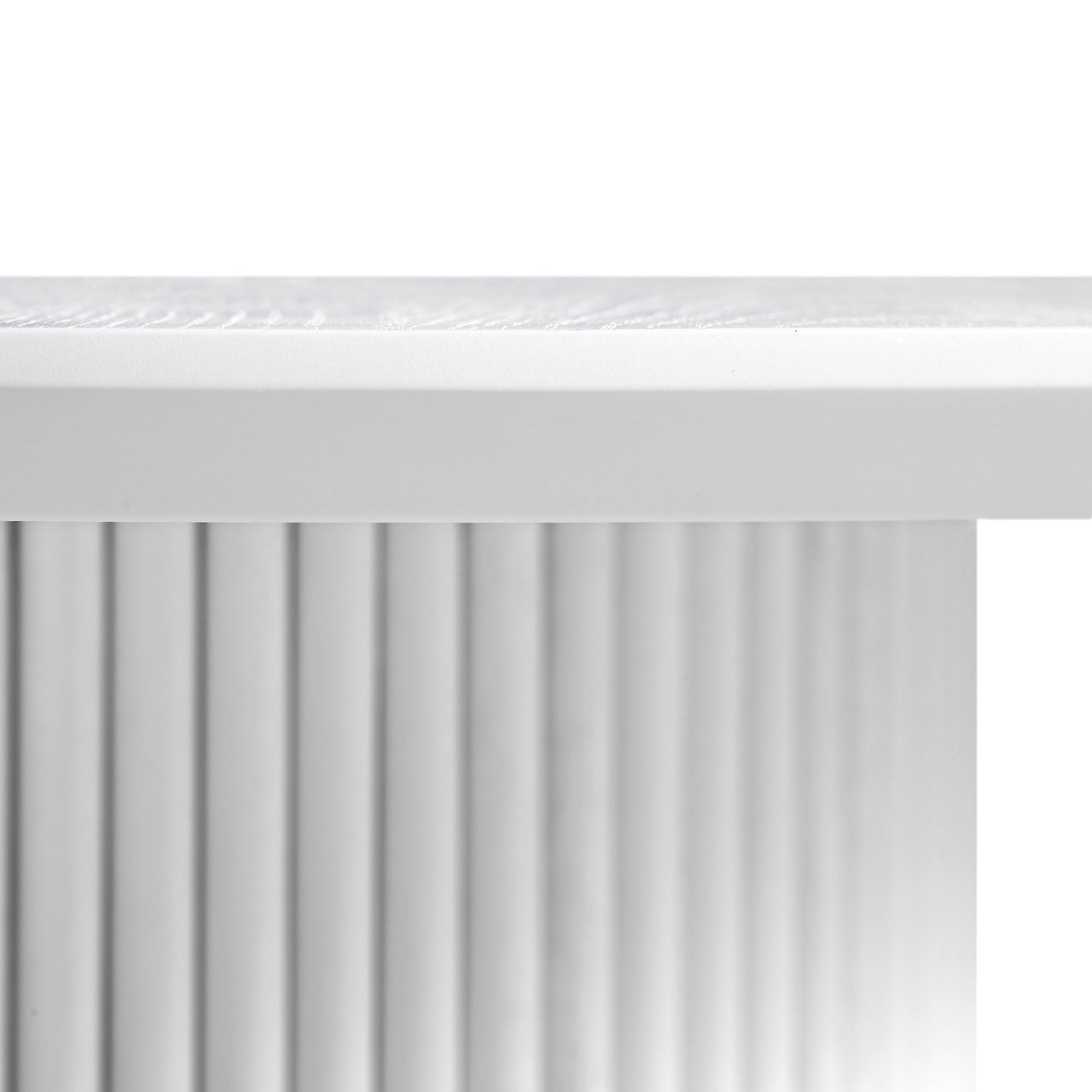 - Notre table à manger Maru très appréciée est désormais disponible en blanc avec un design amélioré d'une base à piédestal cannelée.