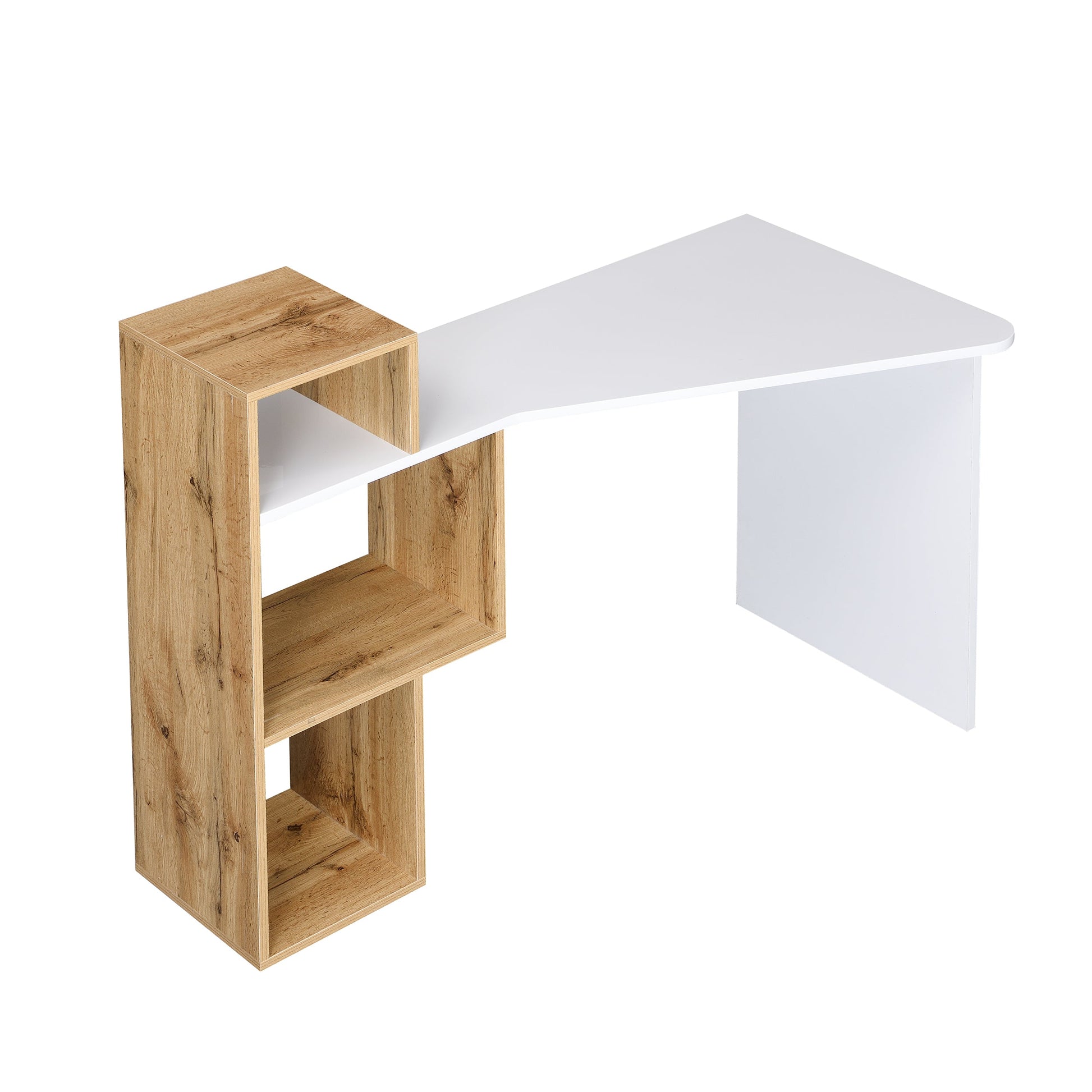 - Notre bureau Mason est intelligemment conçu pour votre bureau à domicile. Doté d'un plateau brillant et d'une étagère à trois niveaux, il s'intègre parfaitement à votre pièce tout en créant un espace de travail pratique.