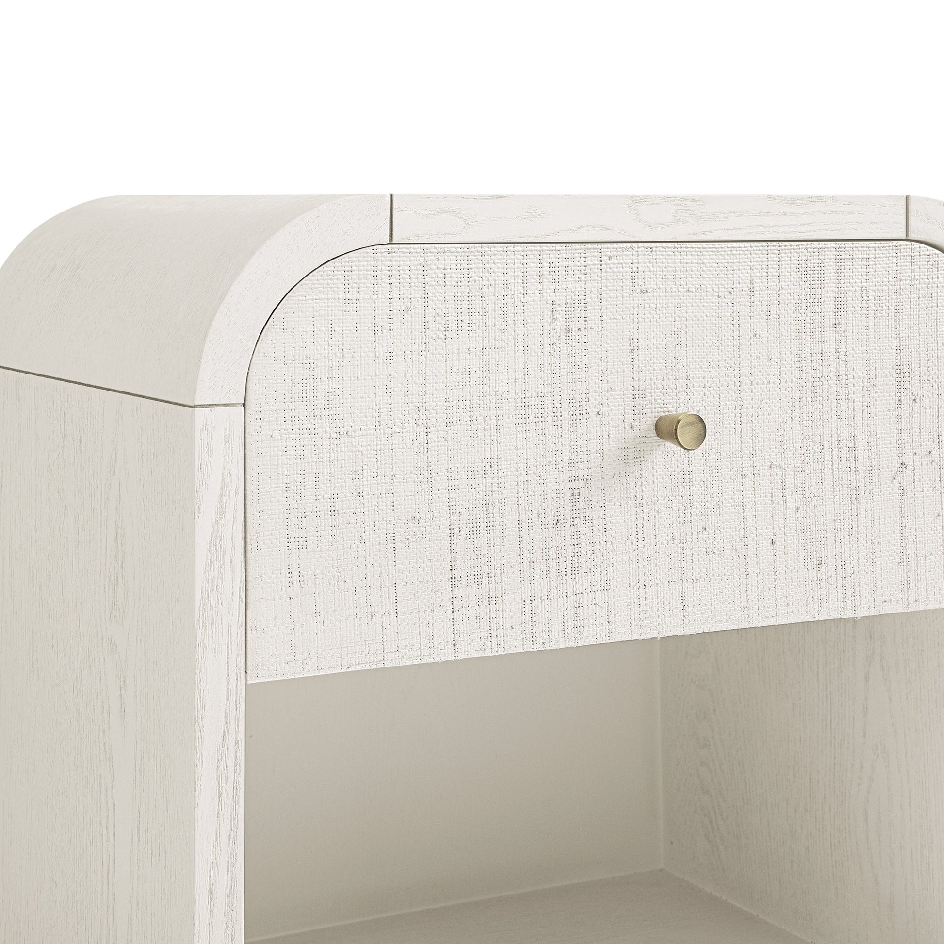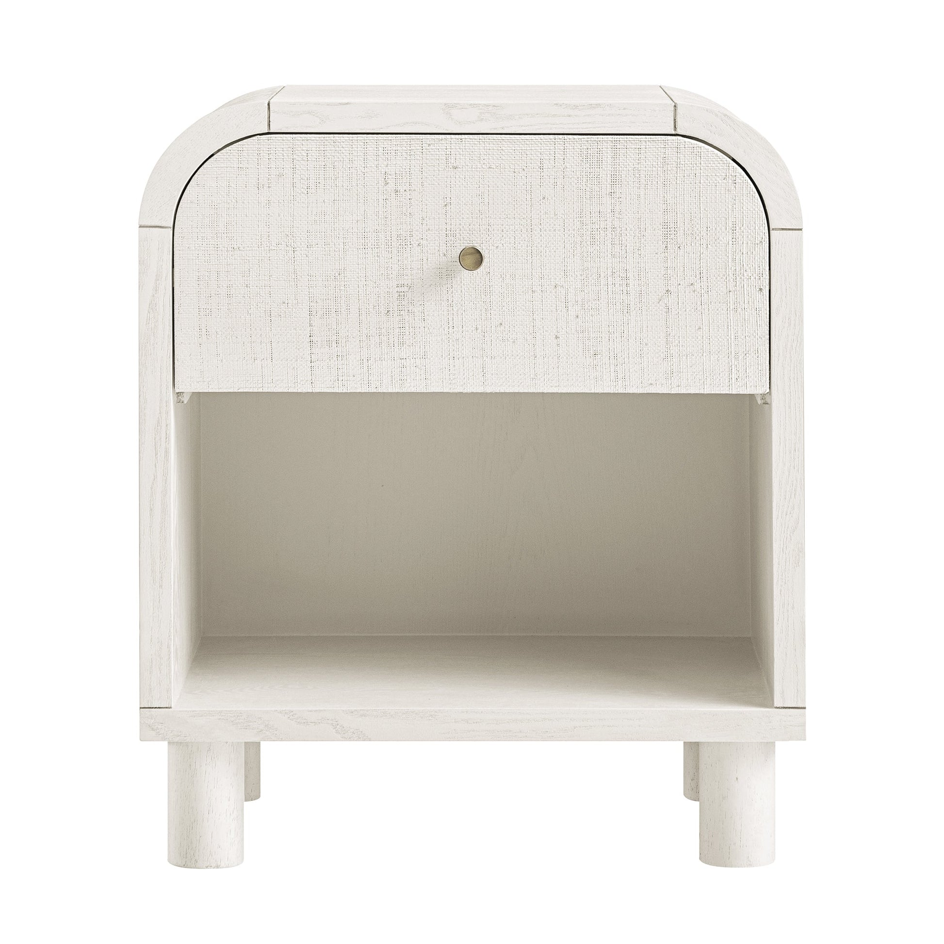 Table de chevet Maude 1 tiroir, frêne blanc lavé avec raphia