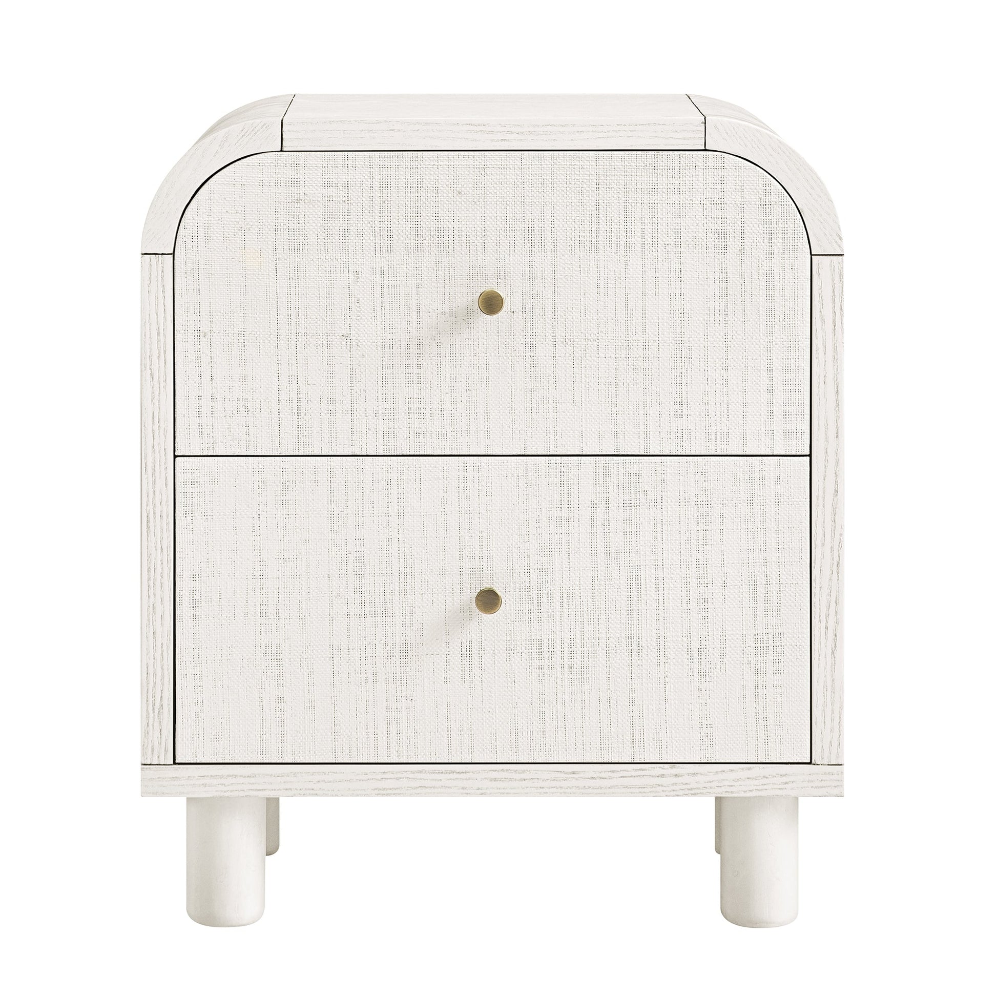 Table de chevet Maude à 2 tiroirs, frêne blanc lavé avec raphia