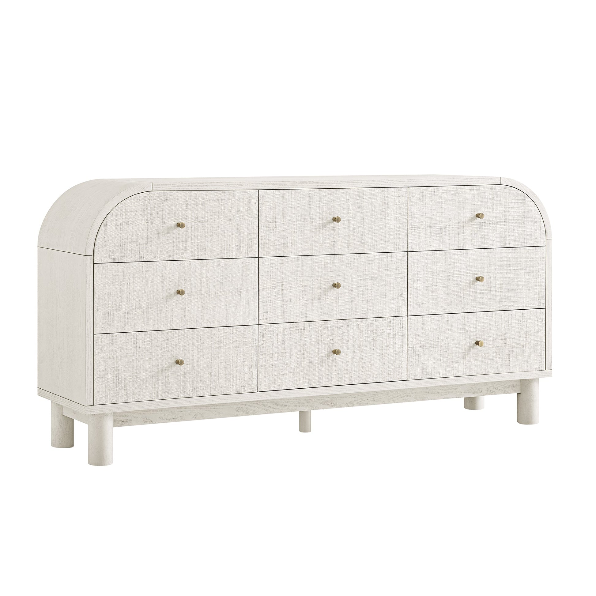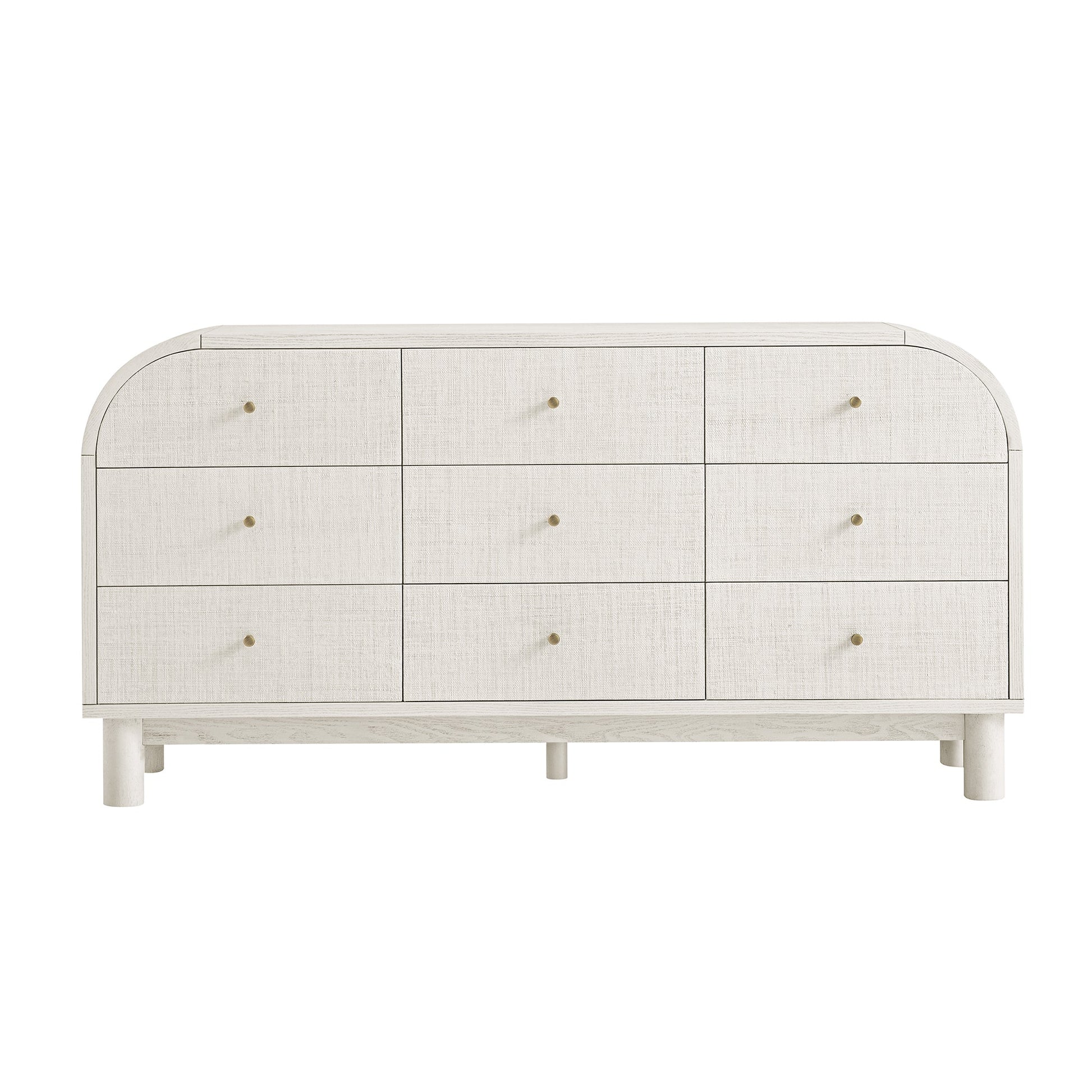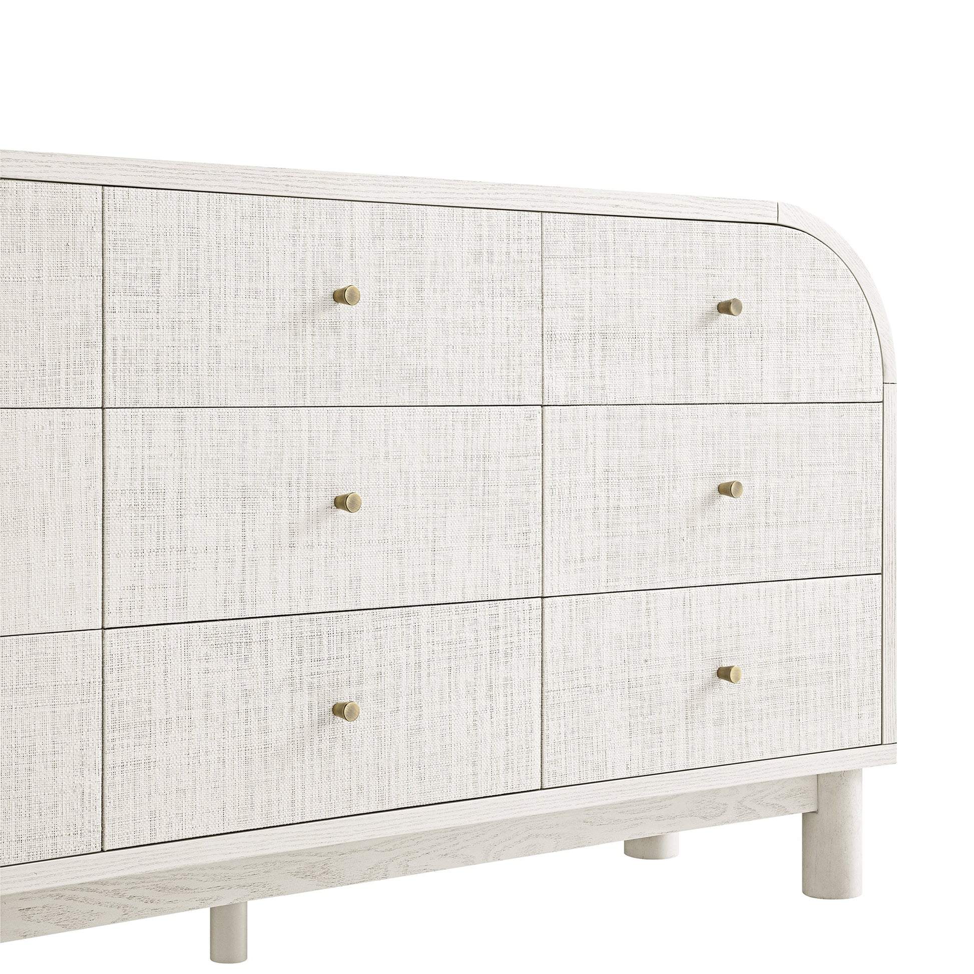 Commode Maude 9 tiroirs, frêne blanc lavé avec raphia