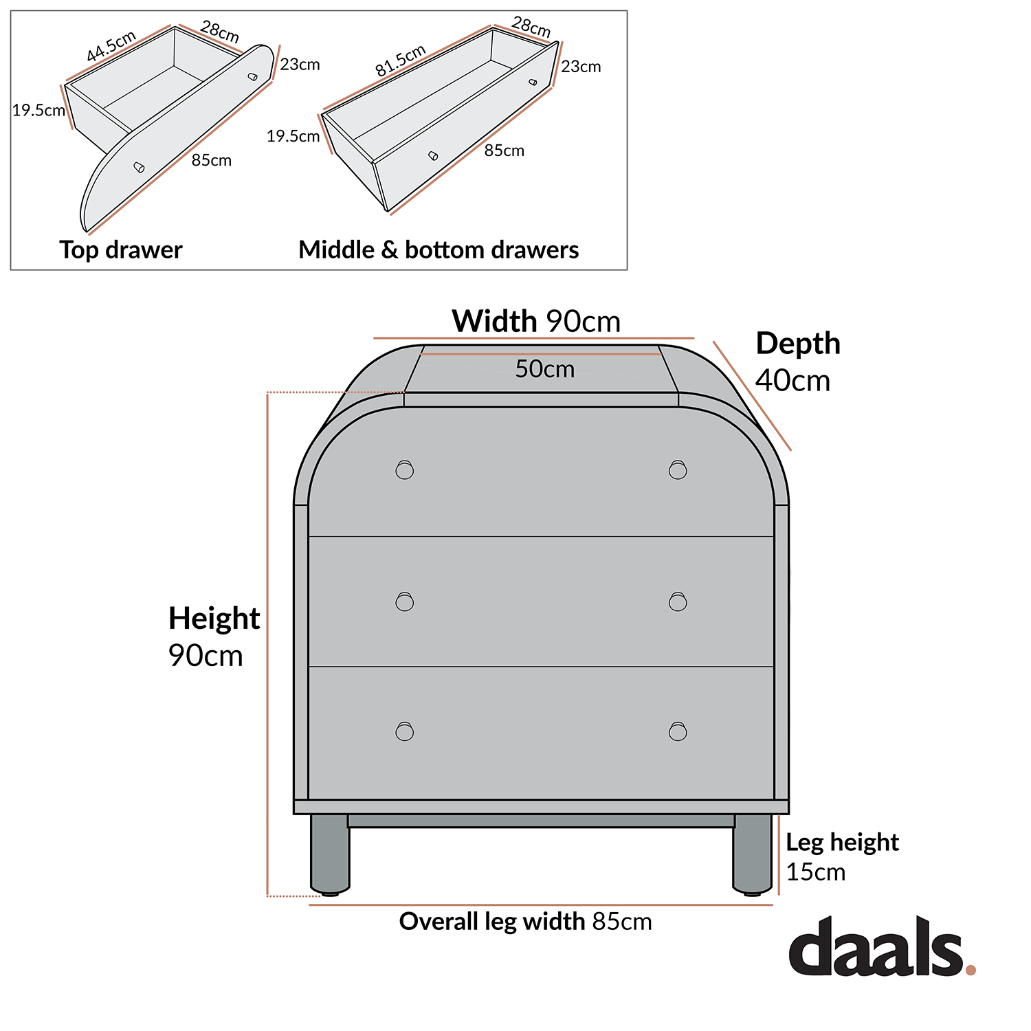 - Trois tiroirs spacieux offrent un rangement pratique pour les vêtements et les objets essentiels, le tout enveloppé dans un design aussi apaisant que plein de caractère.