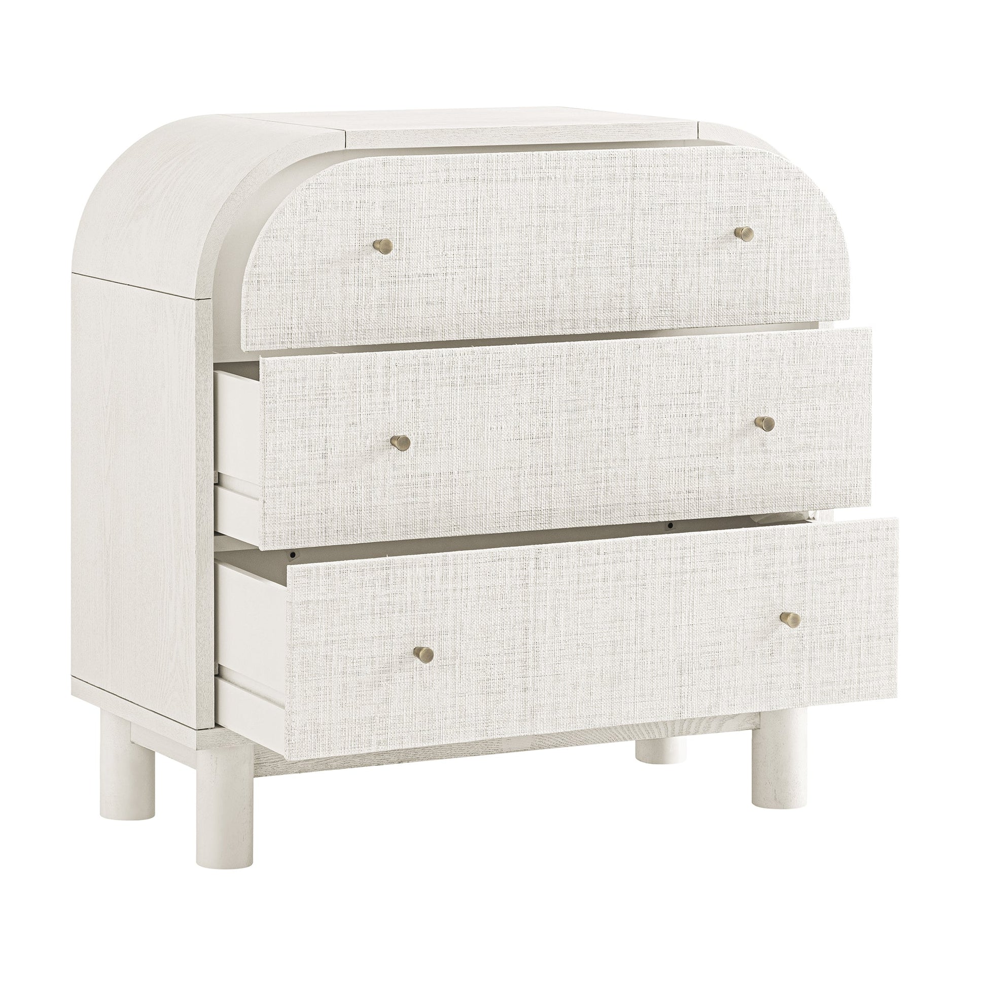 Commode 3 tiroirs Maude, frêne blanc lavé avec raphia