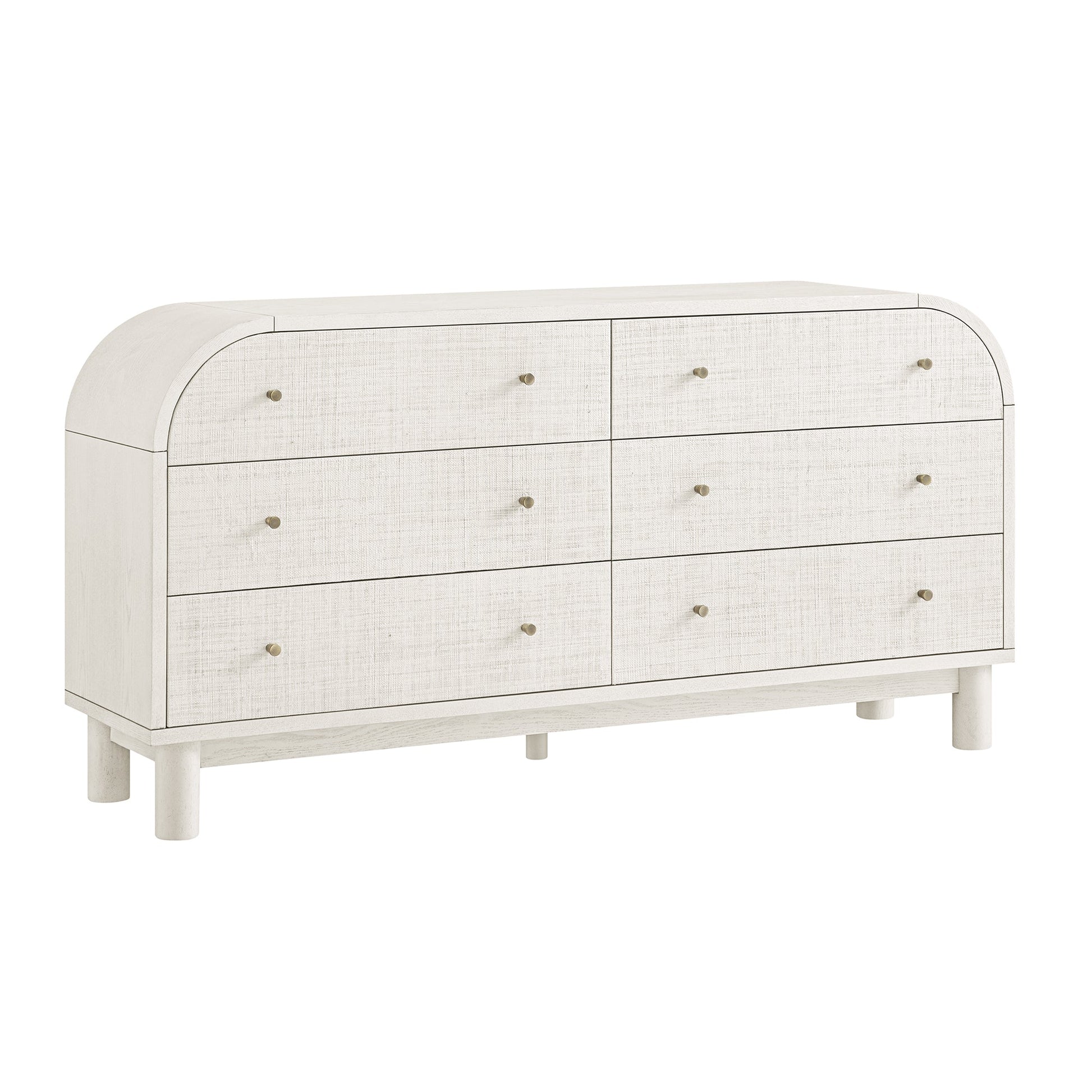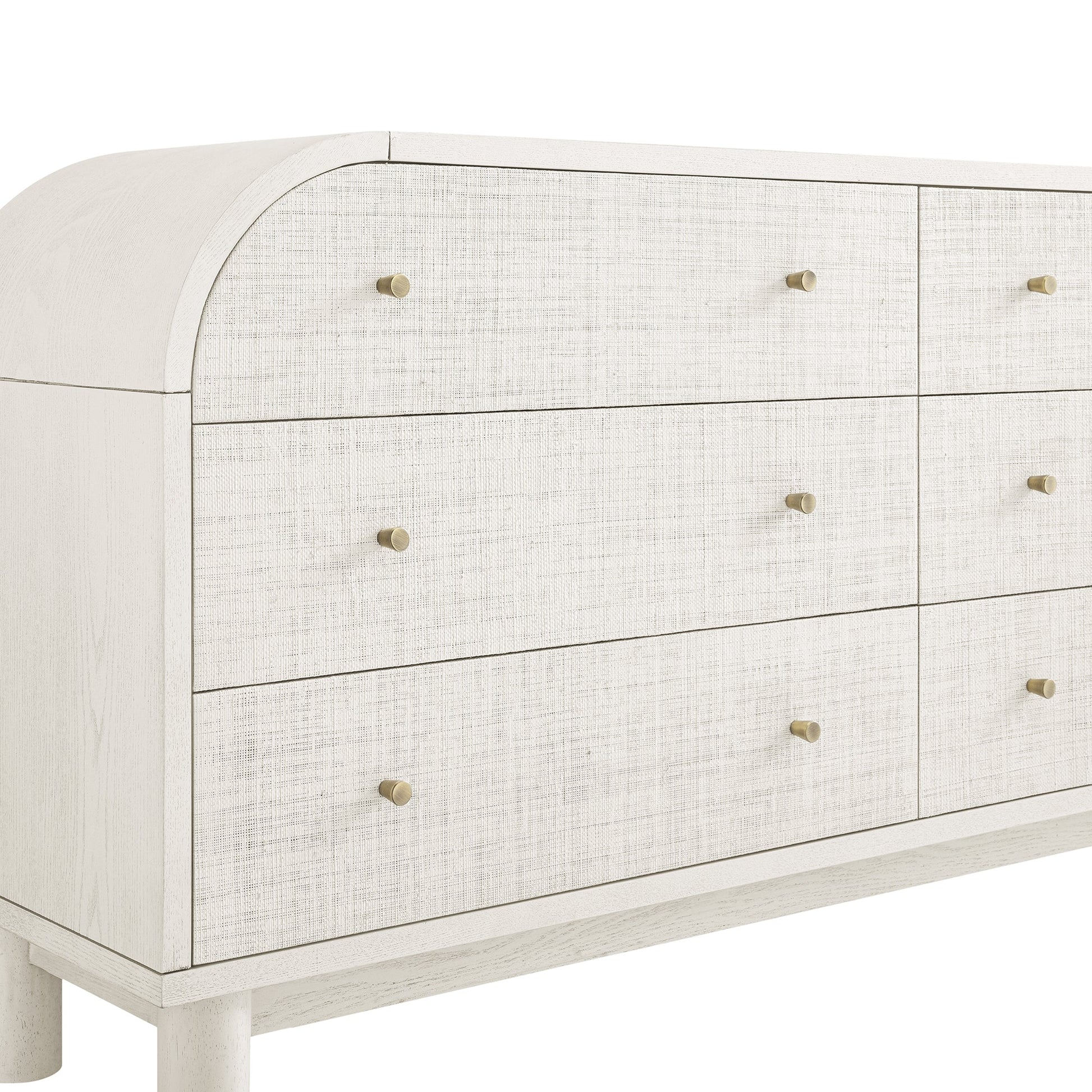 Commode Maude 6 tiroirs, frêne blanc lavé avec raphia
