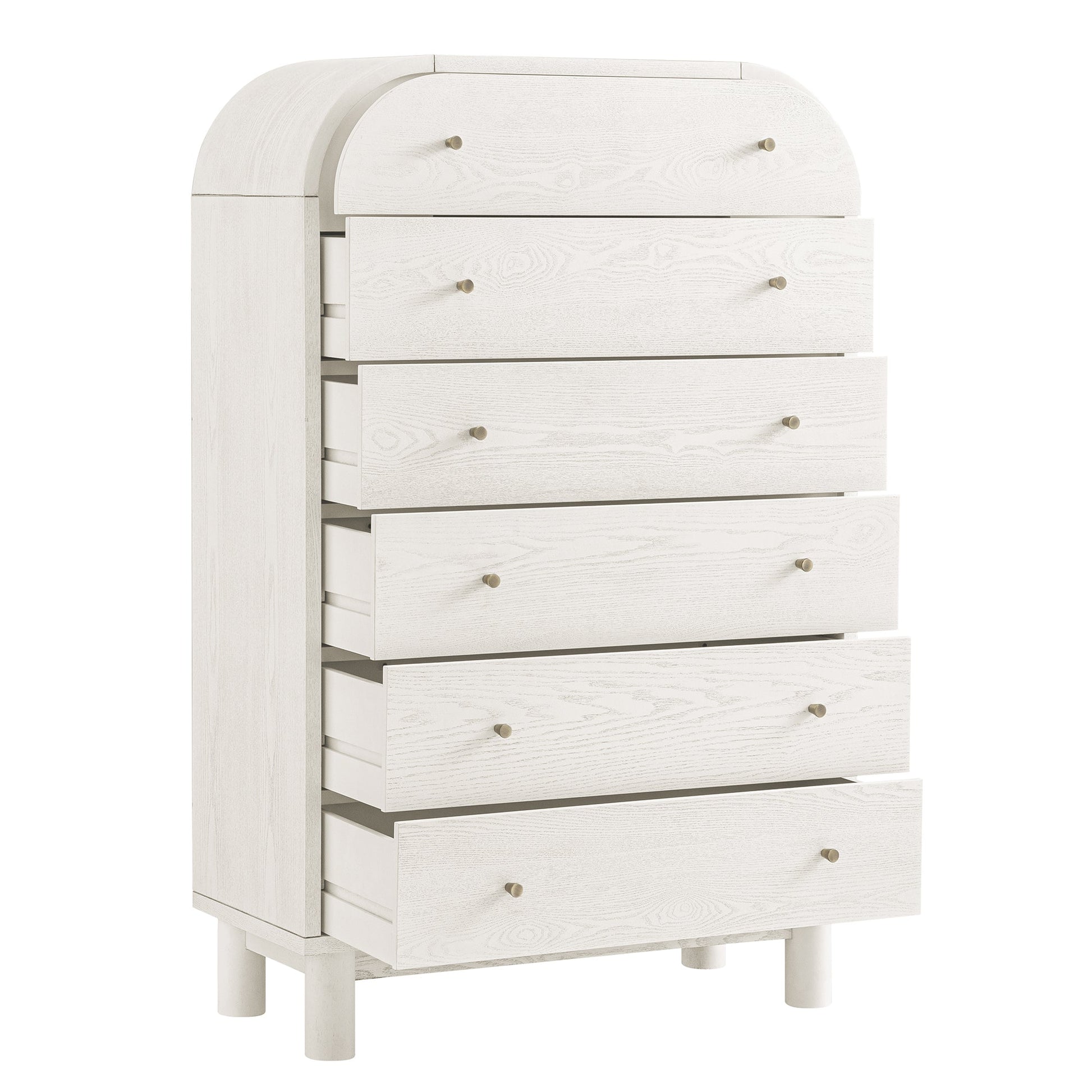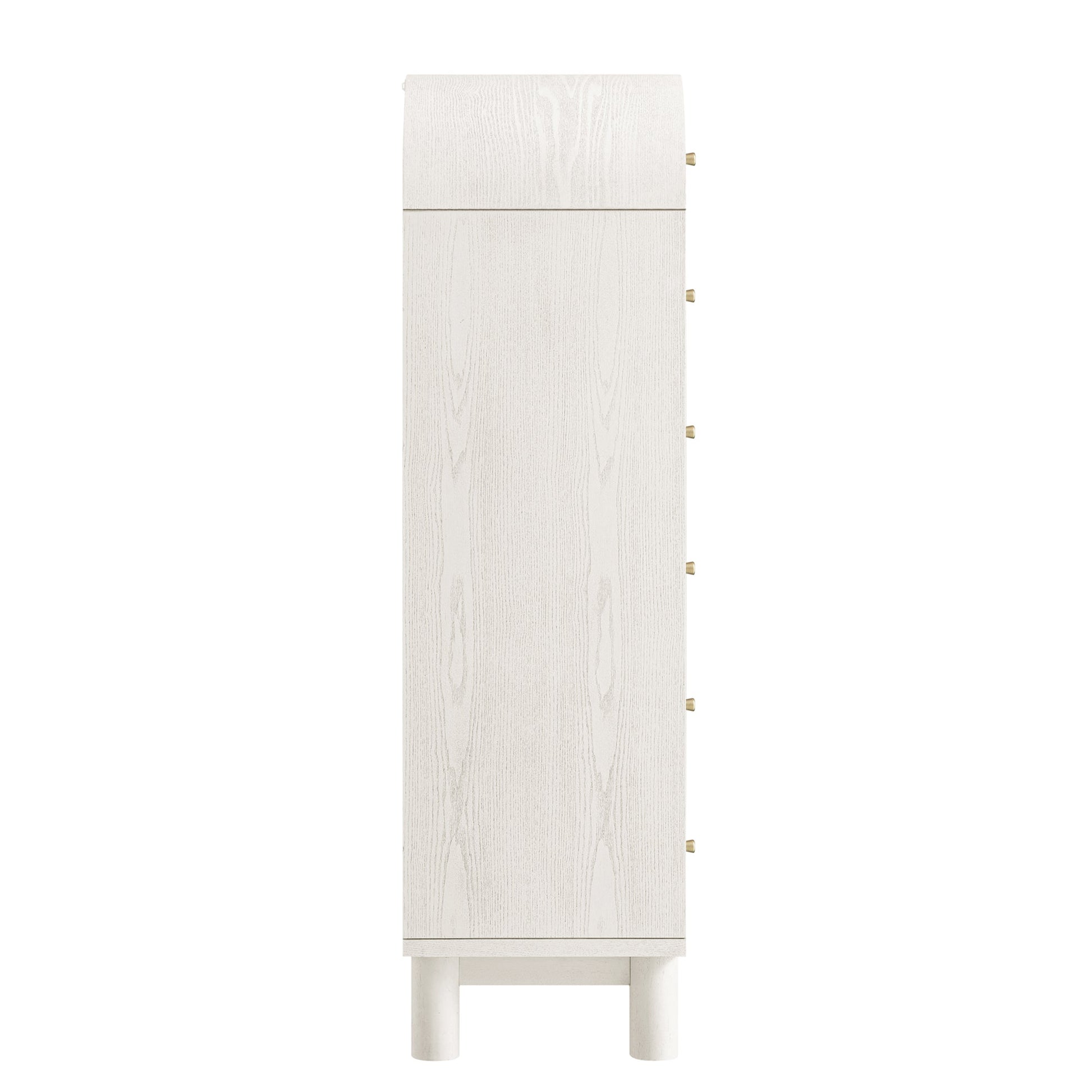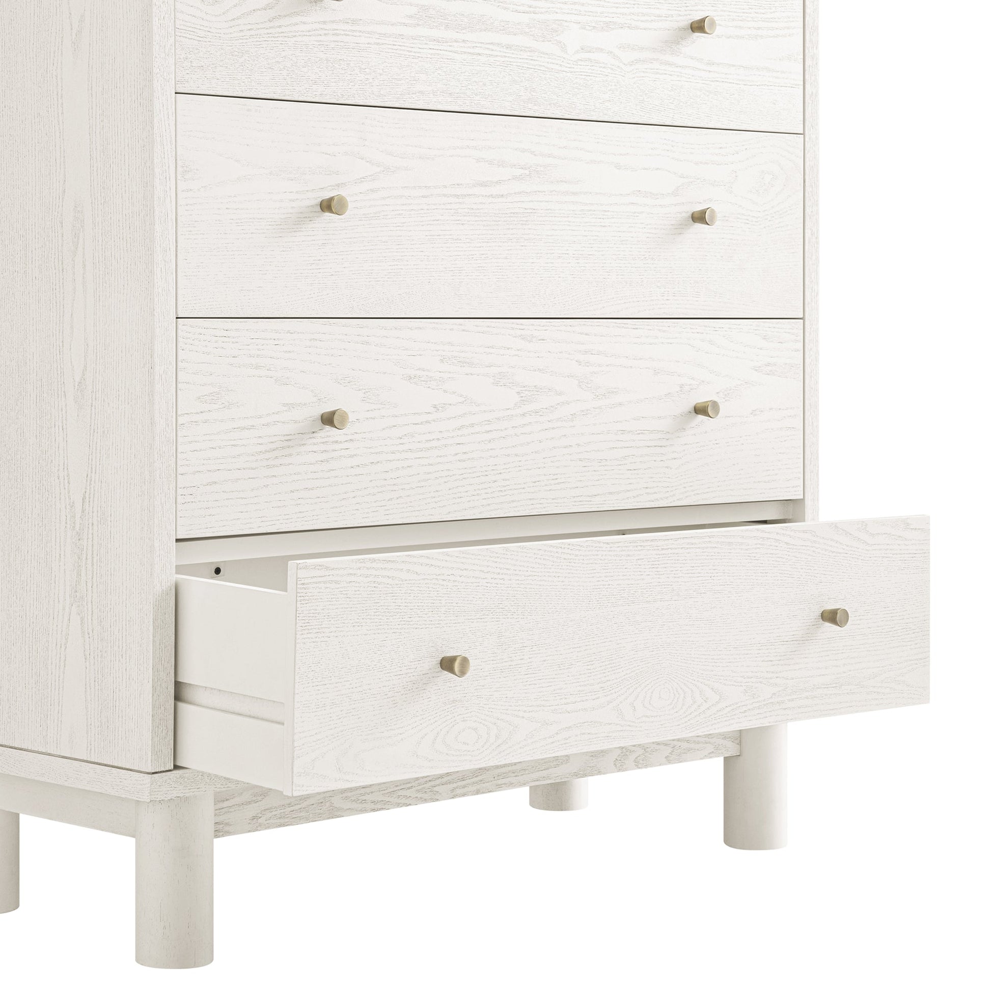 - La peinture blanche lavée à base d’eau expose le grain naturel du bois de frêne.