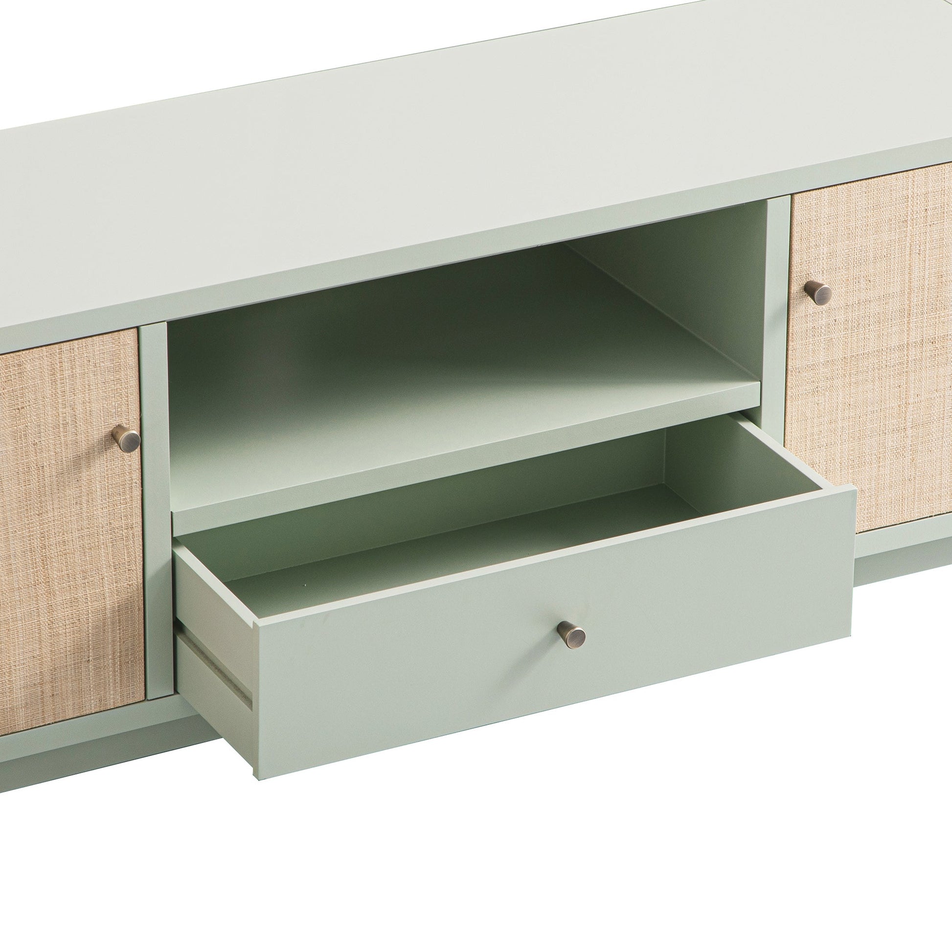 Meuble TV Maude, frêne pistache atténué avec raphia