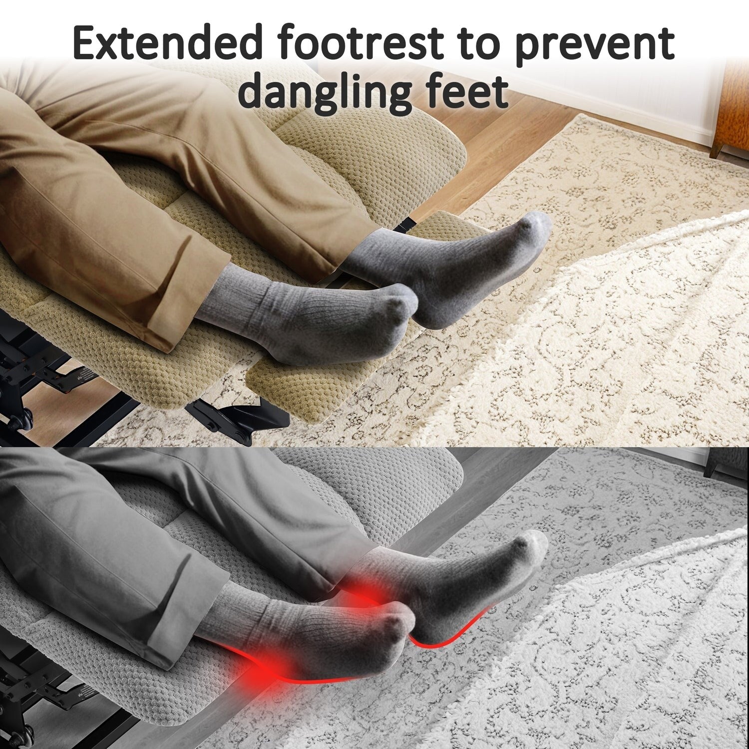 - Repose-pieds allongé : Le repose-pieds allongé de 1,43 m vous permettra d’étirer davantage votre corps et de bien soutenir vos pieds sans entraver la circulation sanguine. (Taille recommandée : 1,70 m à 1,88 m)