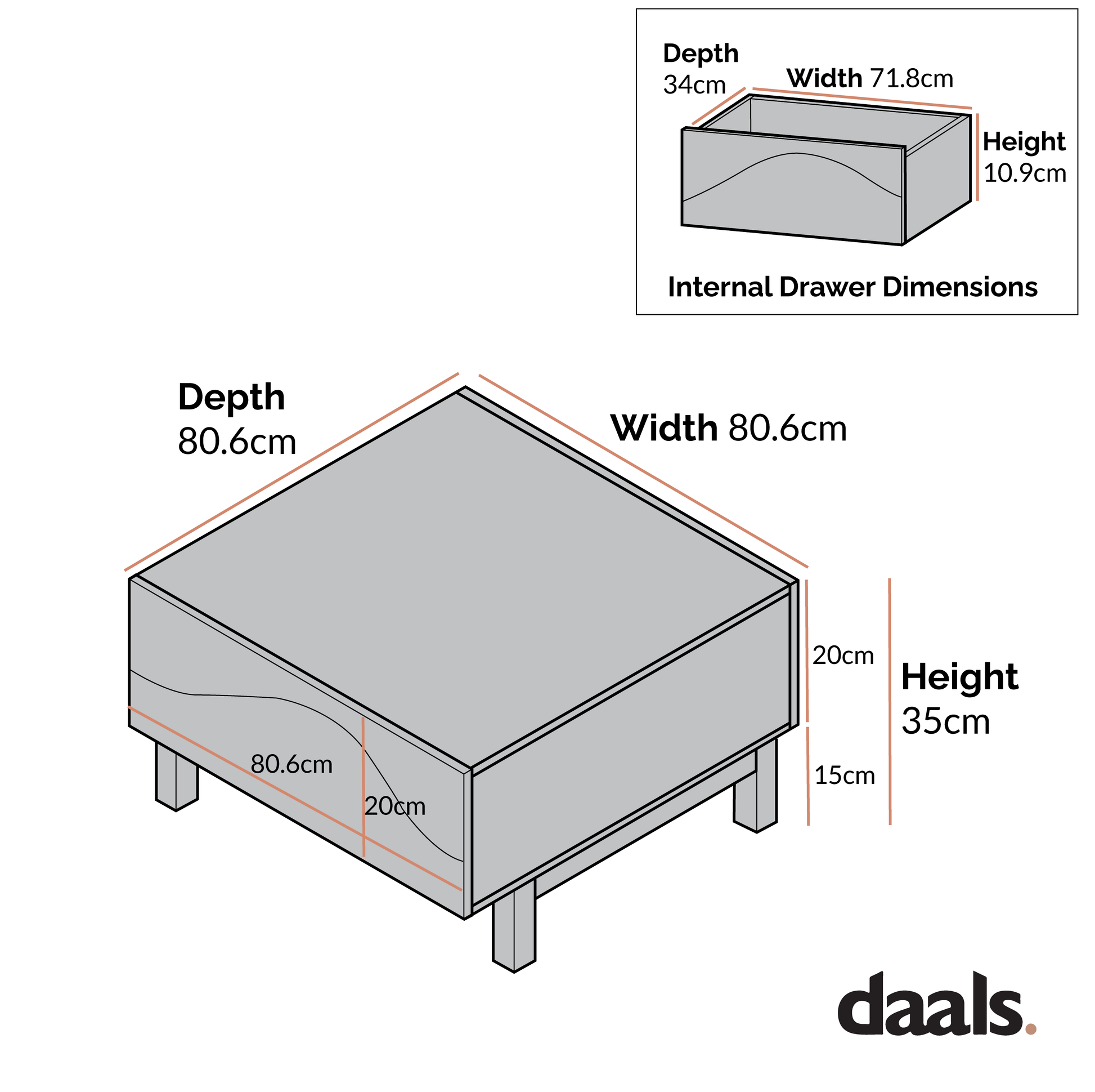 - Dimensions : L 80,6 x P 80,6 x H 35 cm.