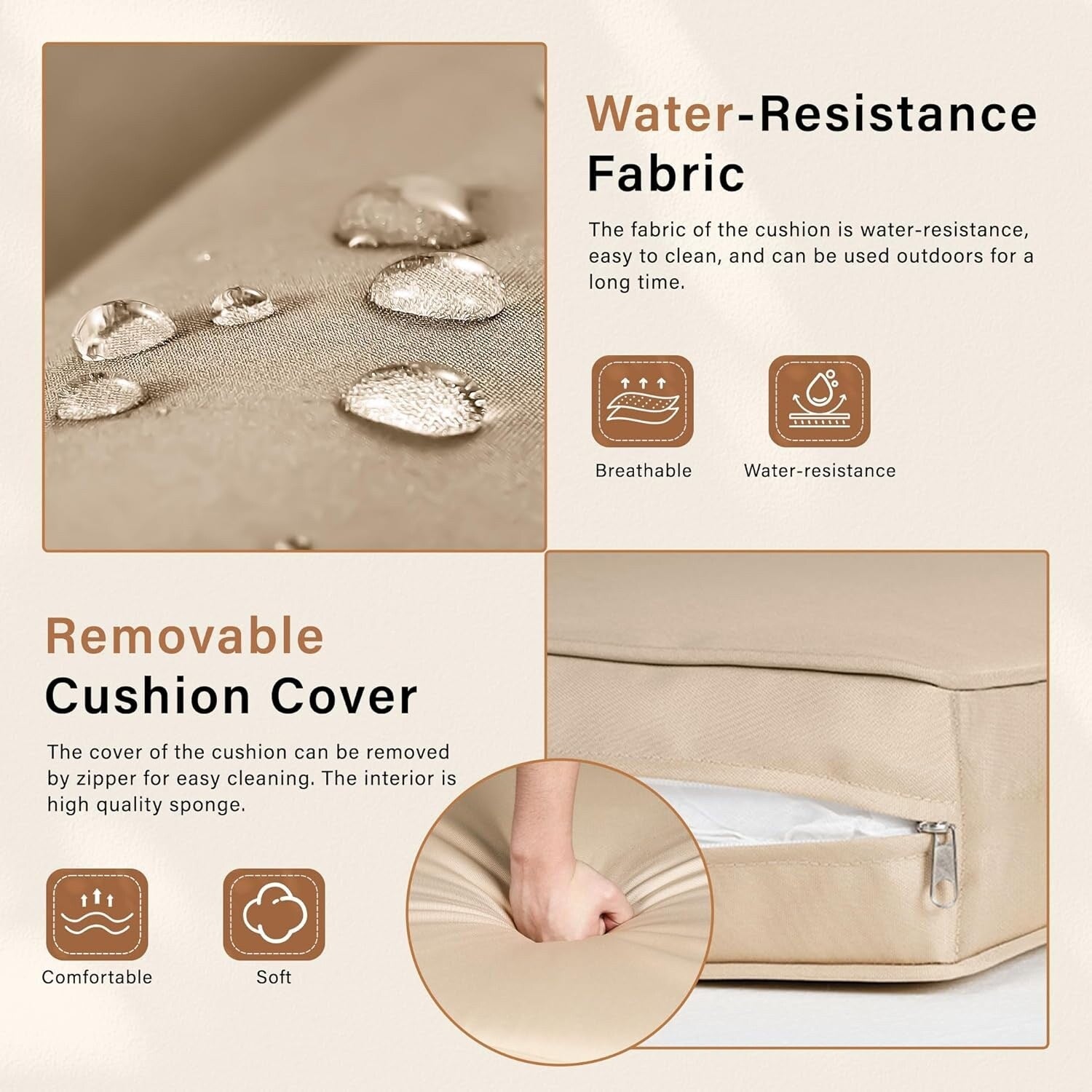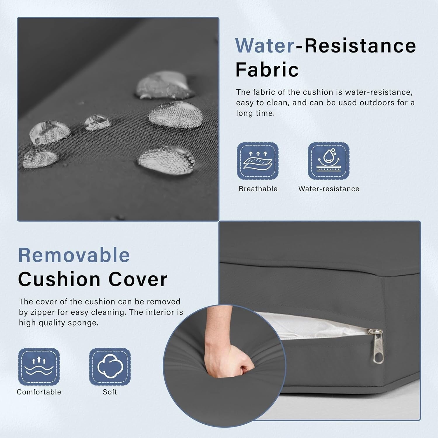 - Les housses de coussin amovibles en polyester sont résistantes aux intempéries et le rembourrage est en mousse.