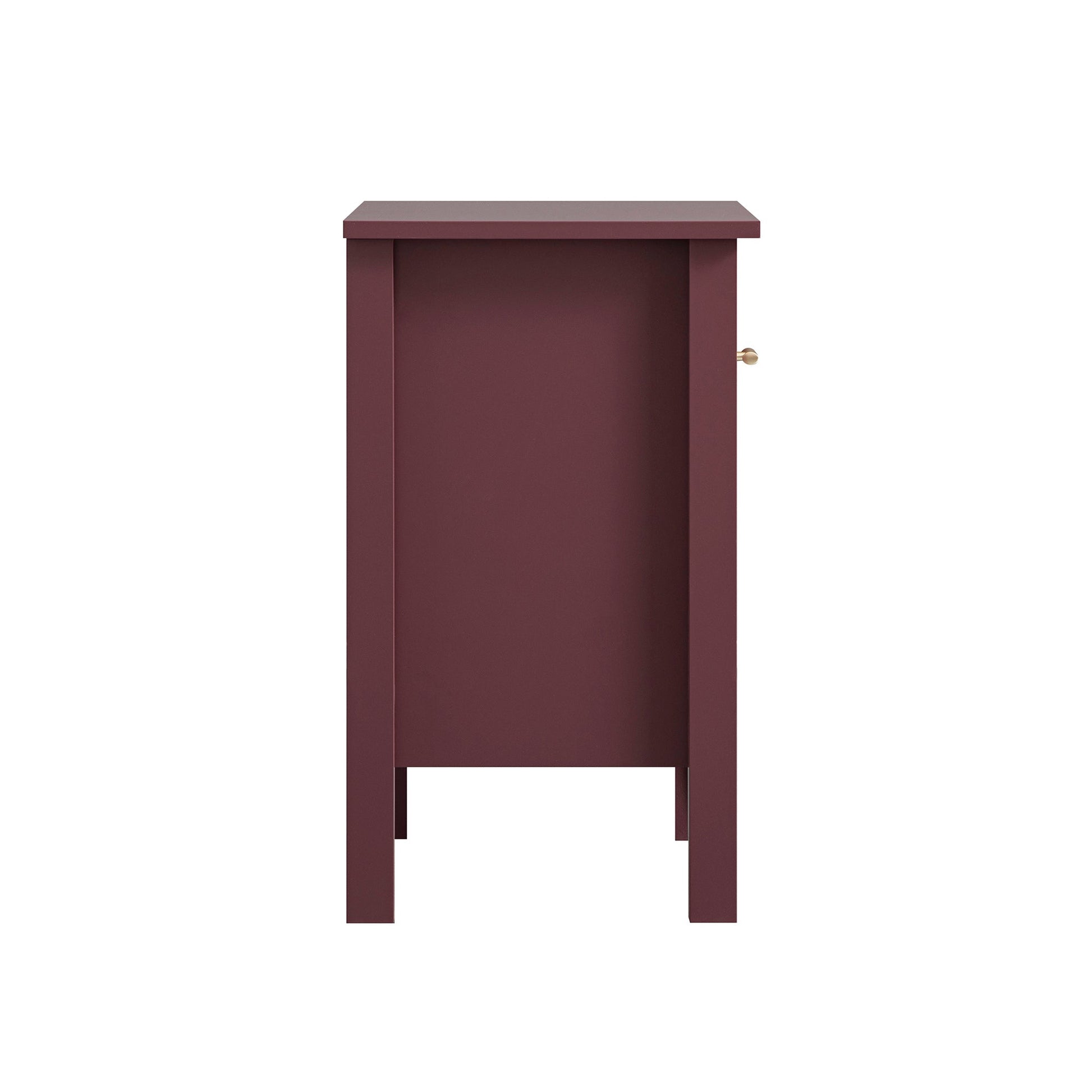 - Le ton bordeaux profond se marie à merveille avec la silhouette épurée et les pieds légèrement fuselés, tandis que la poignée en laiton brossé apporte une note de raffinement discret.