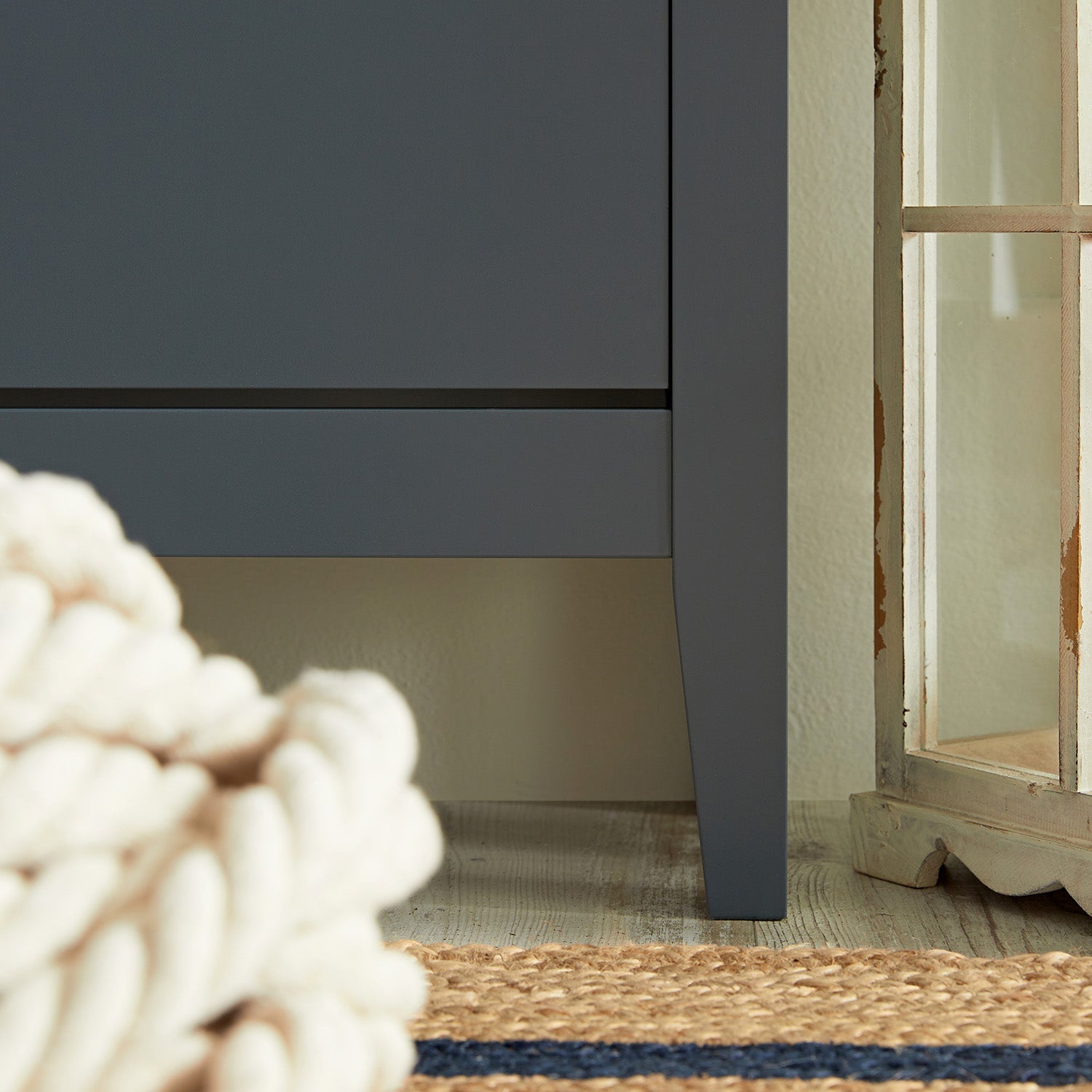 - Complétez le look : illustré avec l'armoire à chaussures à 2 niveaux Oakham Stormy Blue, notre tapis à bordure festonnée en jute tressé à la main Evie bleu marine .