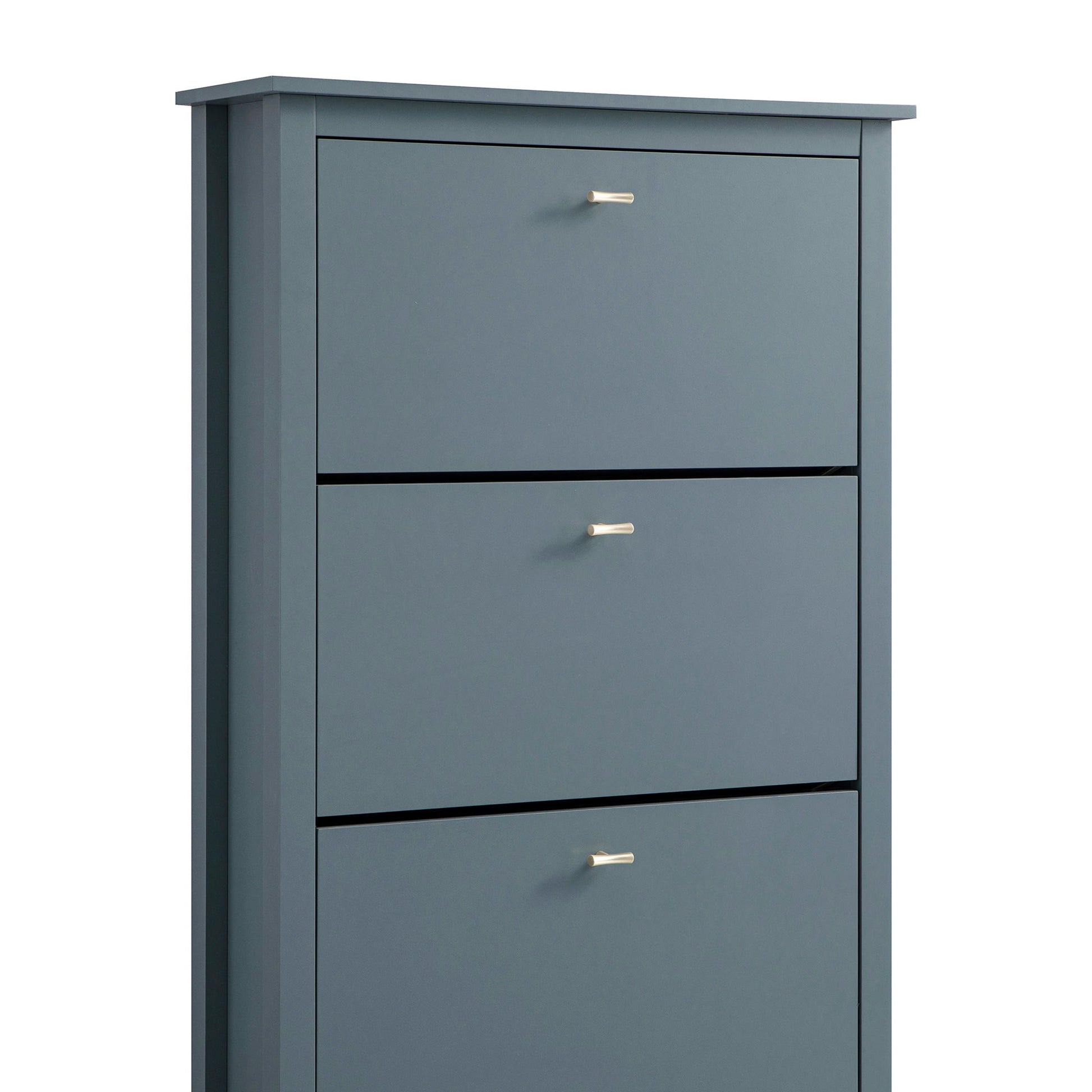 Meuble à chaussures à 3 niveaux Oakham, bleu orageux