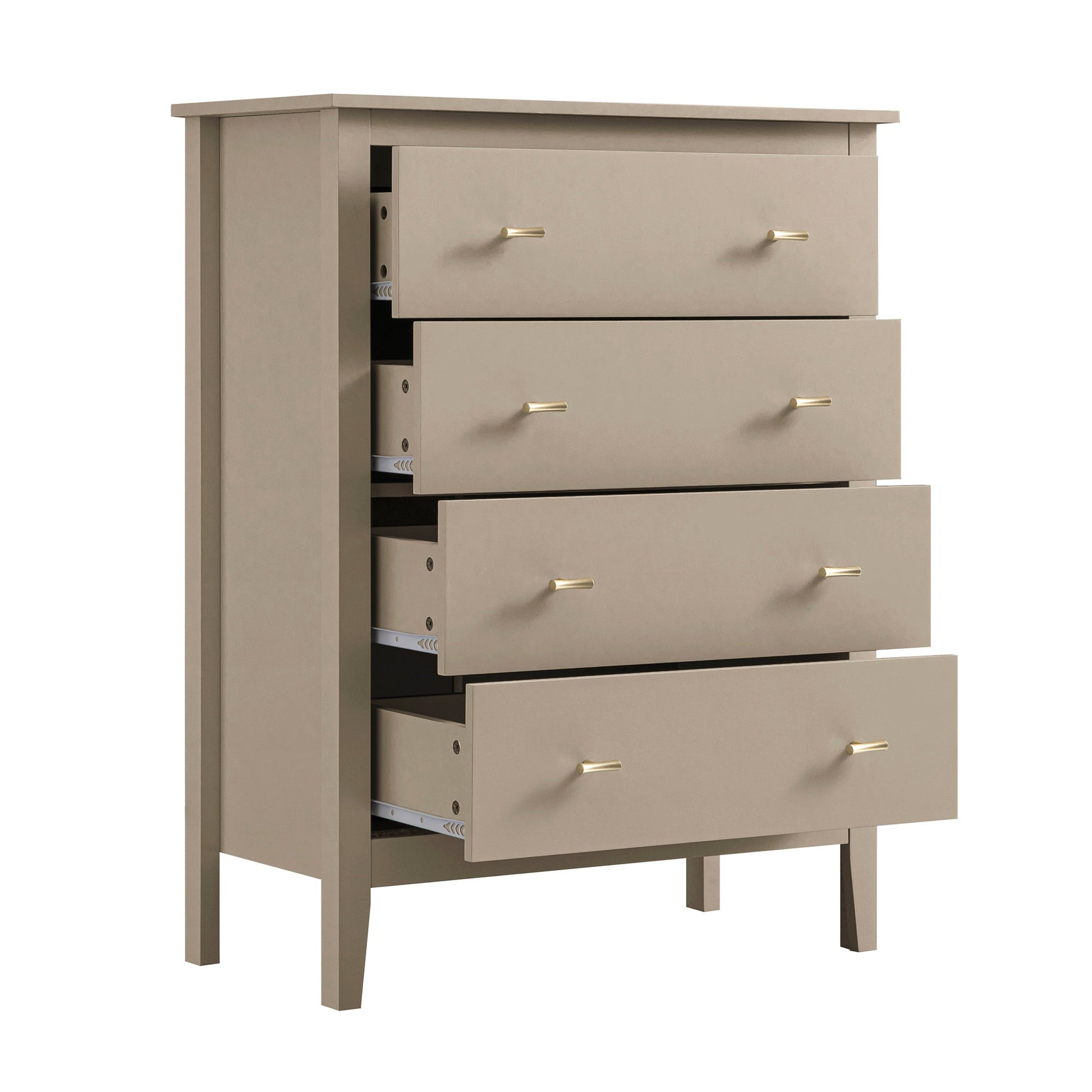 - Quatre tiroirs coulissent en douceur sur des glissières métalliques, offrant suffisamment d'espace pour les vêtements, le linge de maison ou le rangement quotidien.