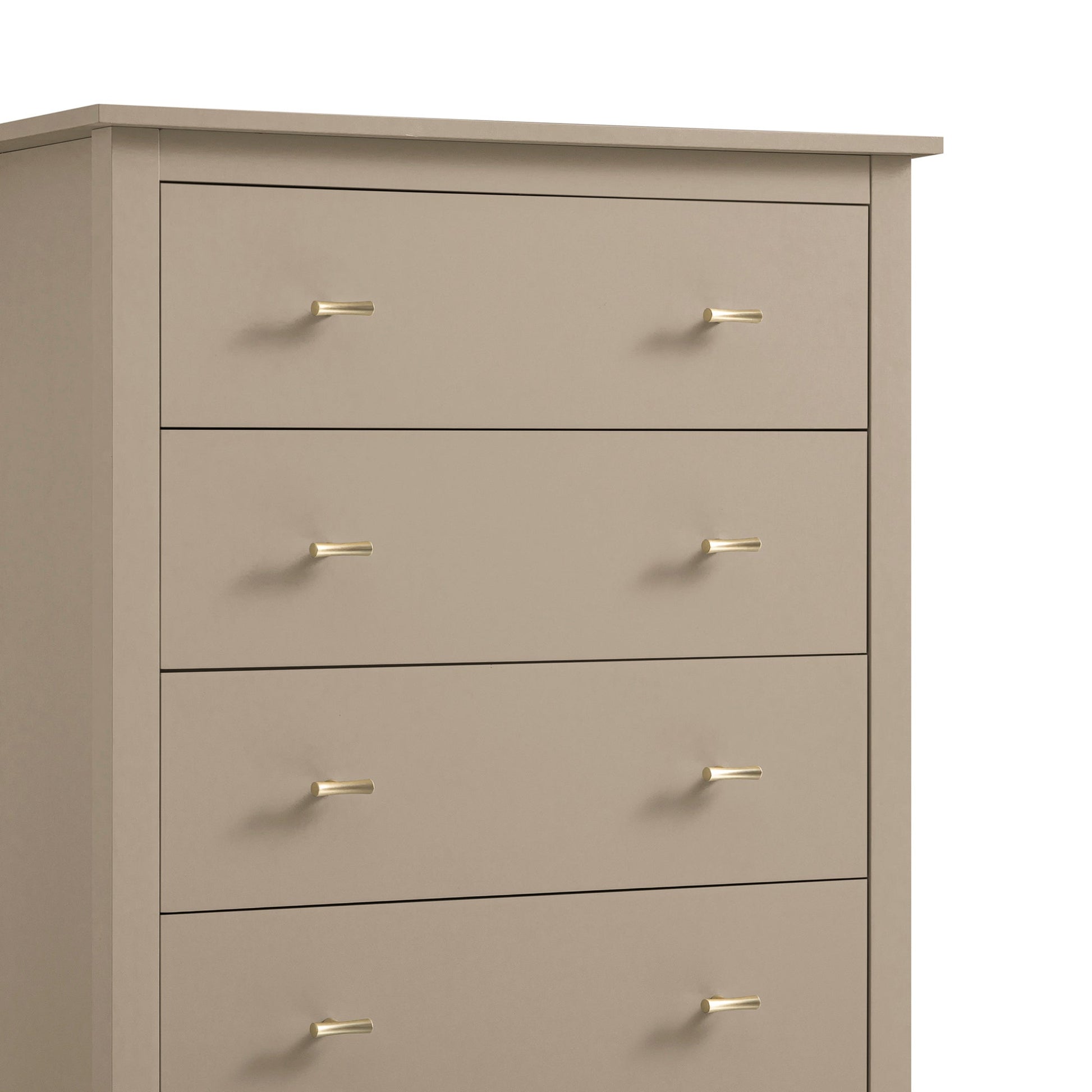 - Avec son ton chaleureux et terreux et sa silhouette raffinée, la commode à 4 tiroirs Oakham en gris foncé offre une élégance pratique pour la chambre moderne.