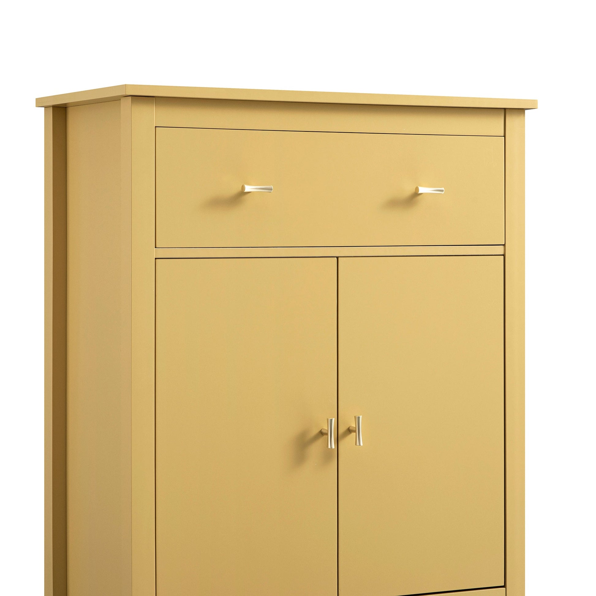 - Doté d'un tiroir supérieur pour les essentiels du quotidien et d'une armoire spacieuse à double porte avec étagères réglables, il est aussi pratique qu'élégant.