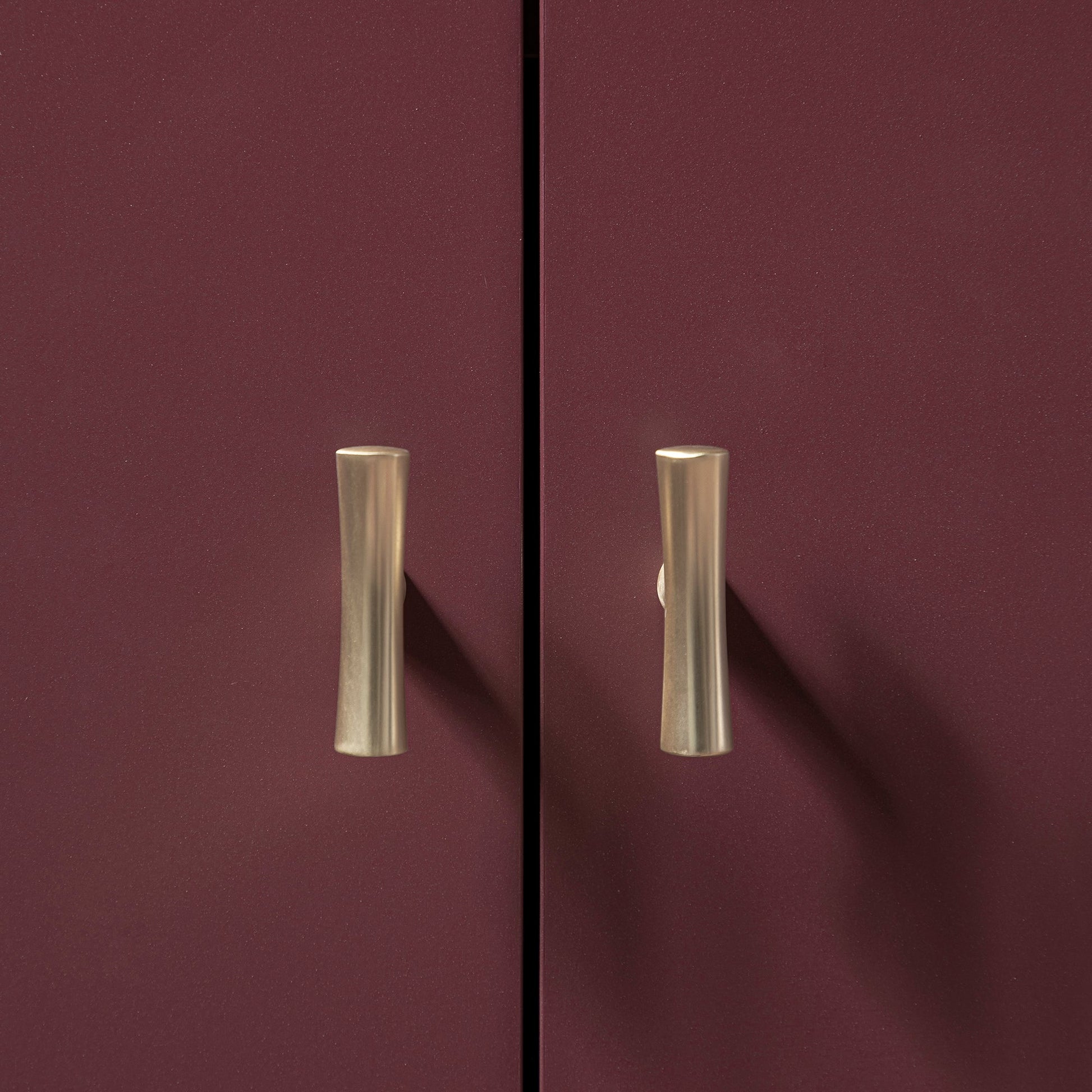 - Sa finition peinte mate aux tons bordeaux profonds apporte chaleur et sophistication, tandis que les lignes épurées et les pieds fuselés gardent le look frais et polyvalent.