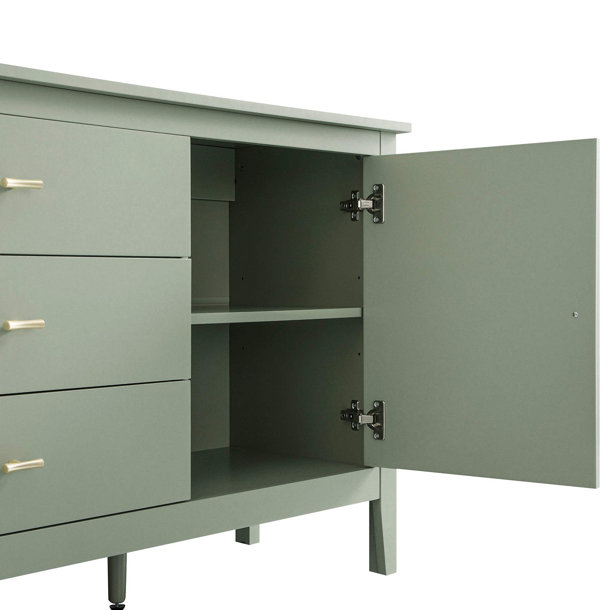 - Sobre mais raffiné, le large buffet Oakham en sauge du désert apporte une présence apaisante et naturelle à n'importe quelle pièce.