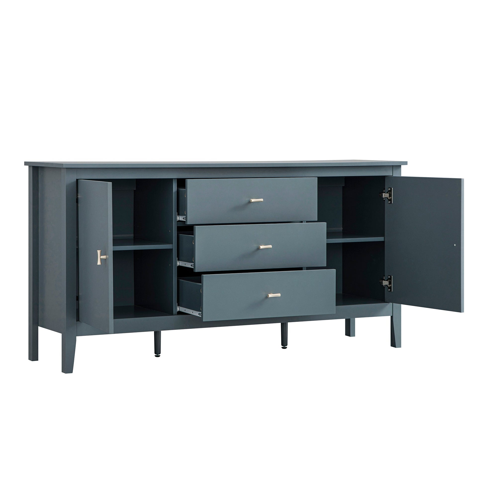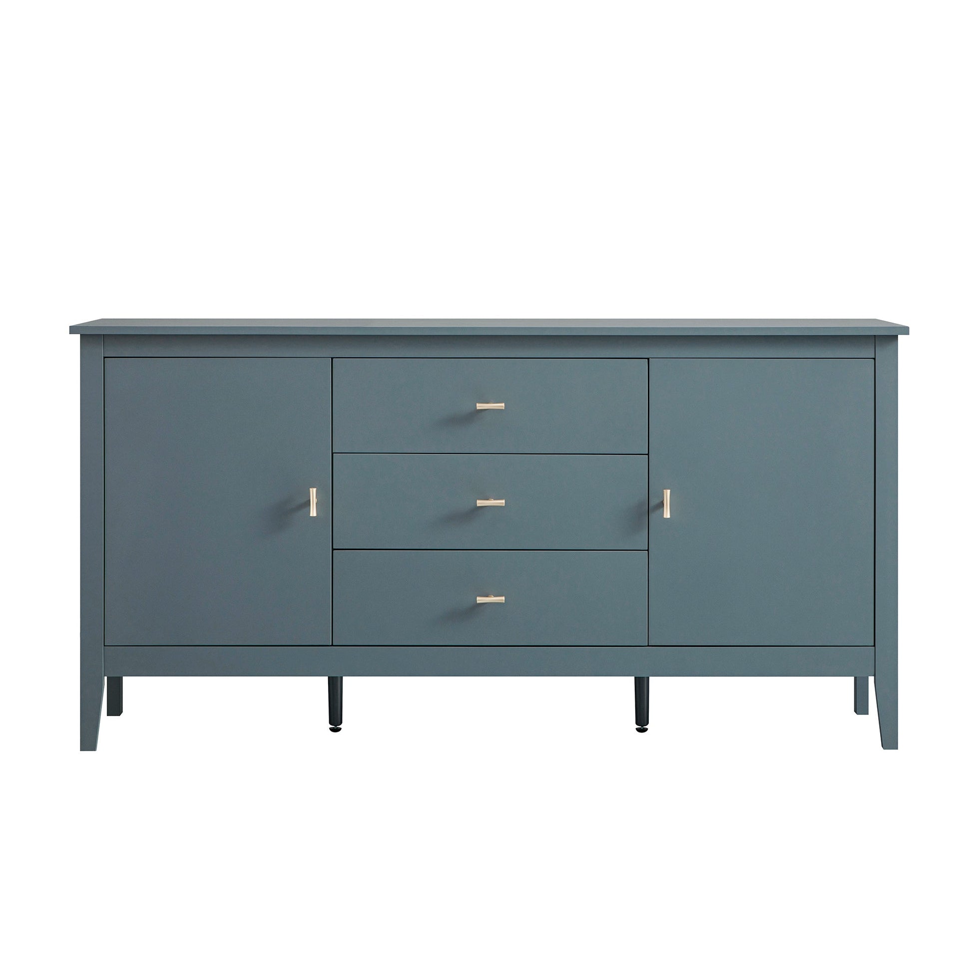 - Frais, composé et discrètement frappant, le large buffet Oakham en bleu orageux apporte une profondeur confiante à n'importe quel espace.