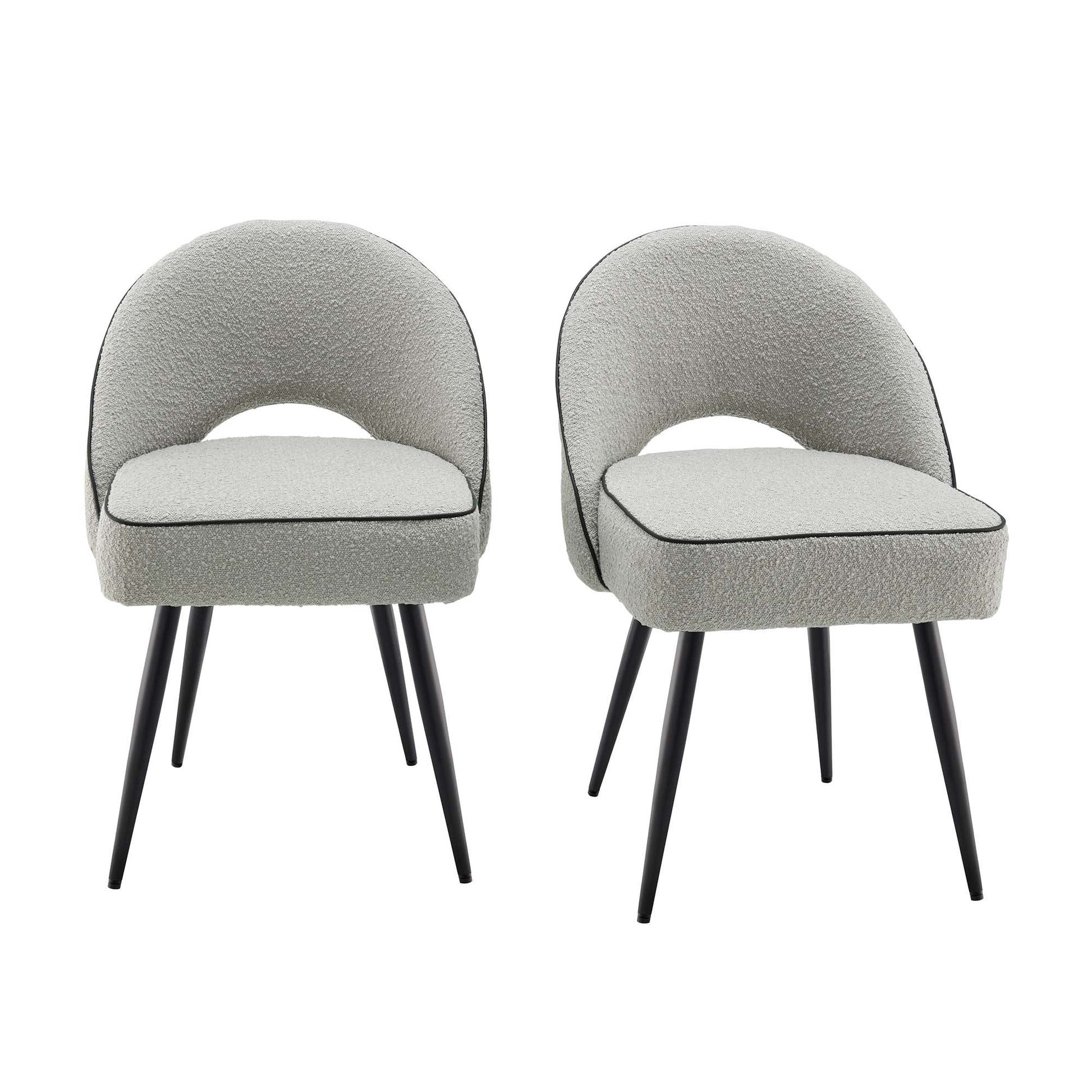 Ensemble de 2 chaises de salle à manger Oakley en tissu gris bouclé avec passepoil
