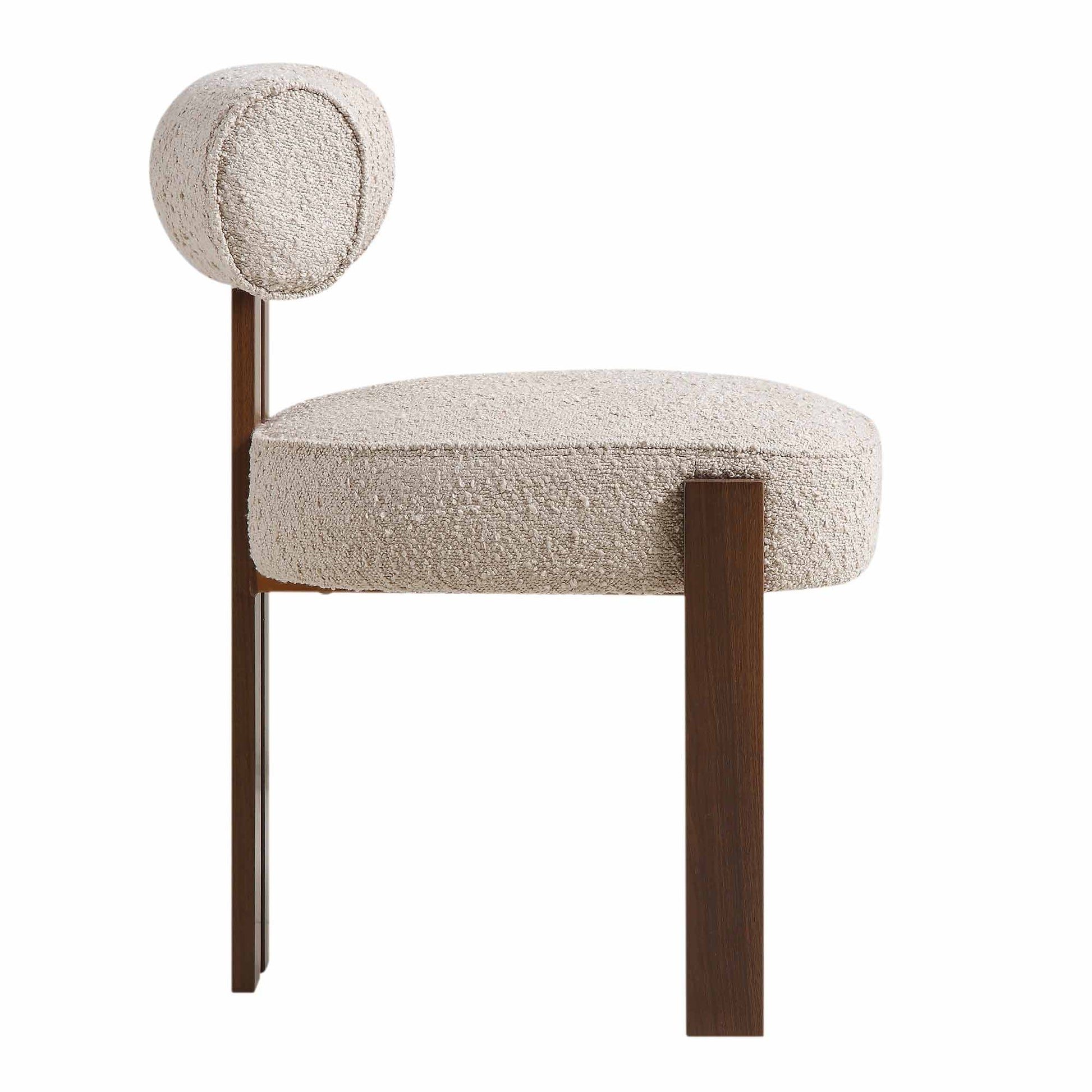 Combinant un revêtement en boucle taupe chic et un cadre effet bois de noyer, notre chaise de salle à manger Ophelia s'intègre parfaitement dans votre pièce pour créer un espace de salle à manger accueillant.