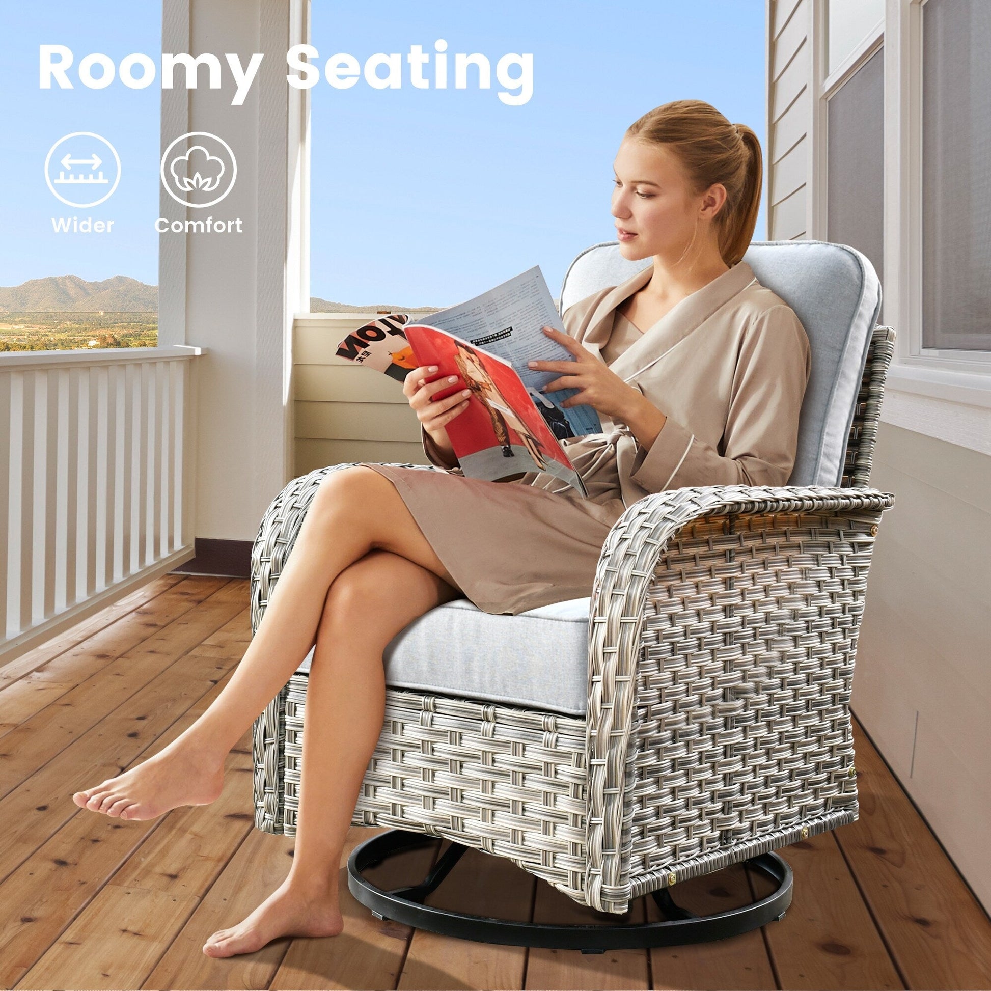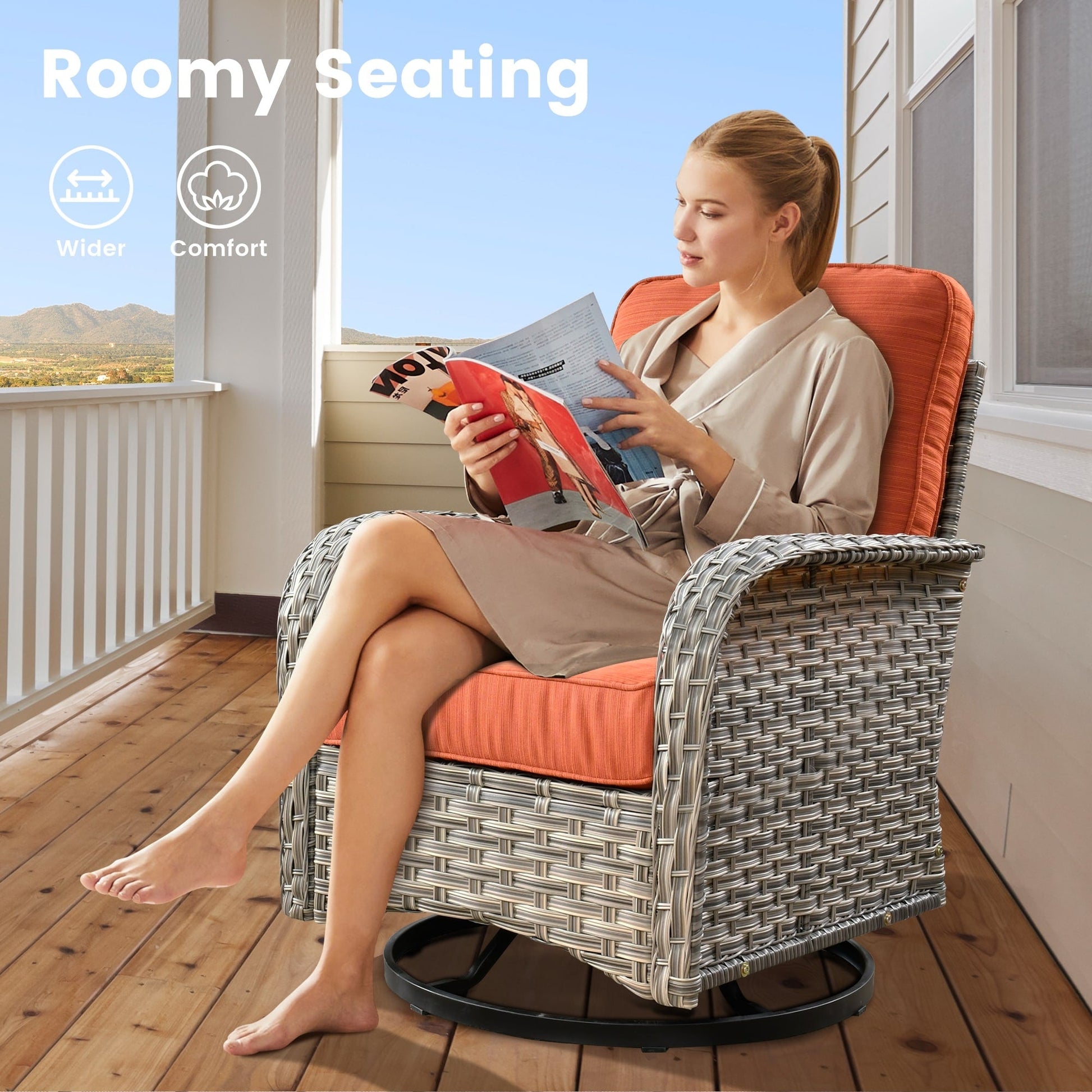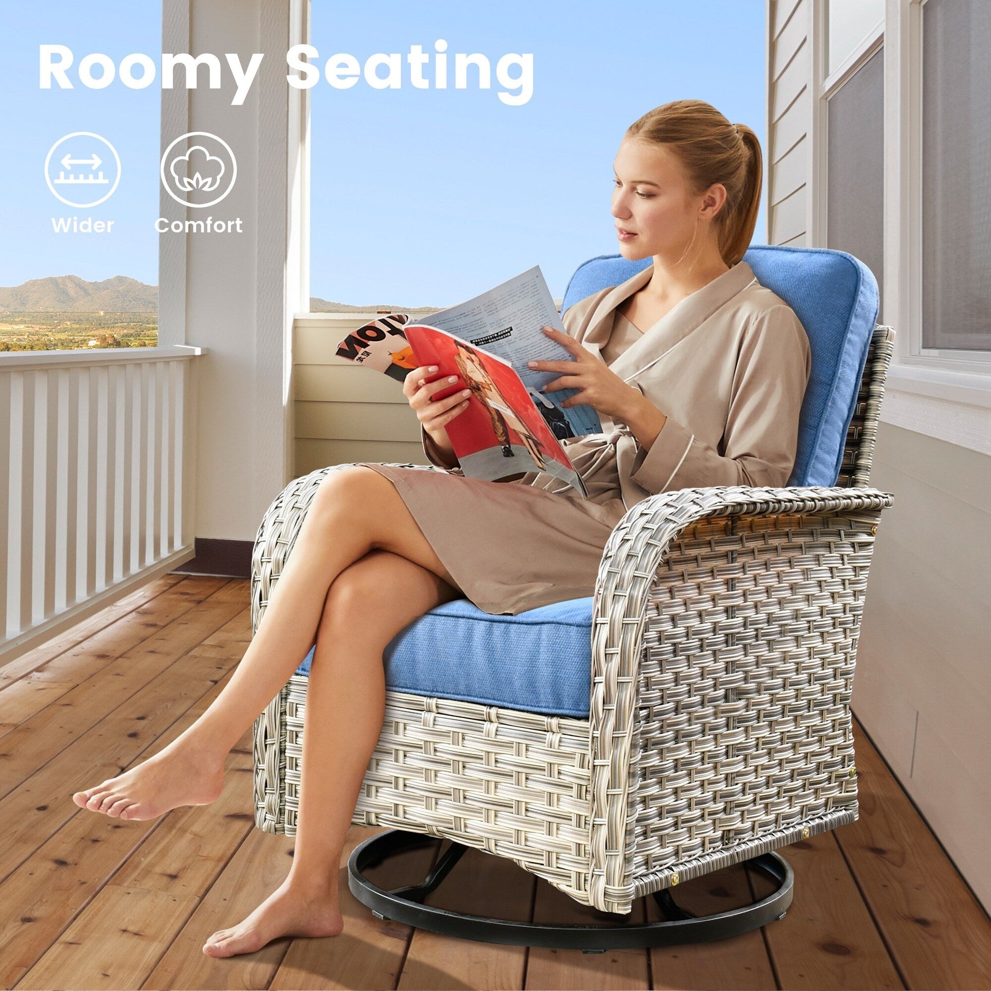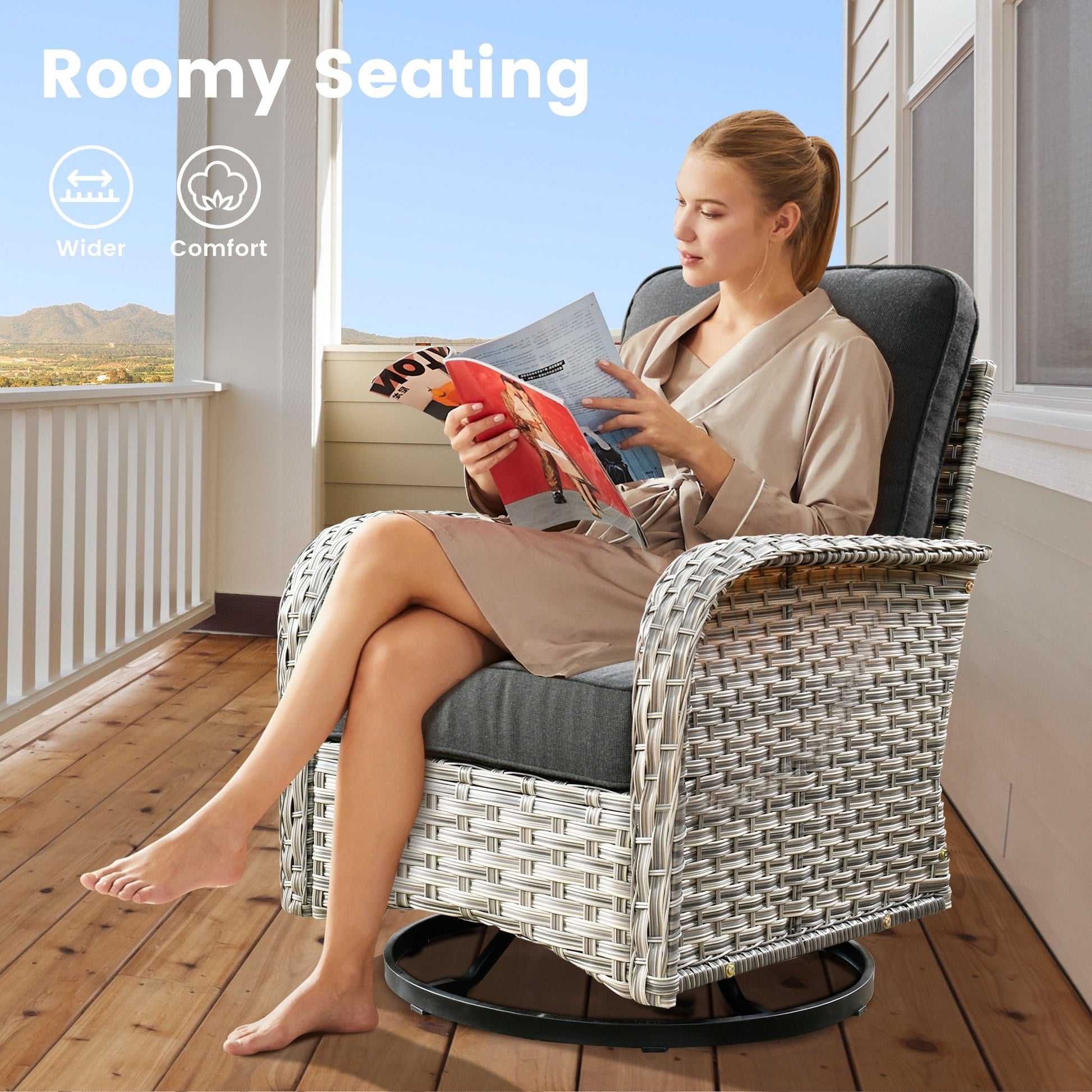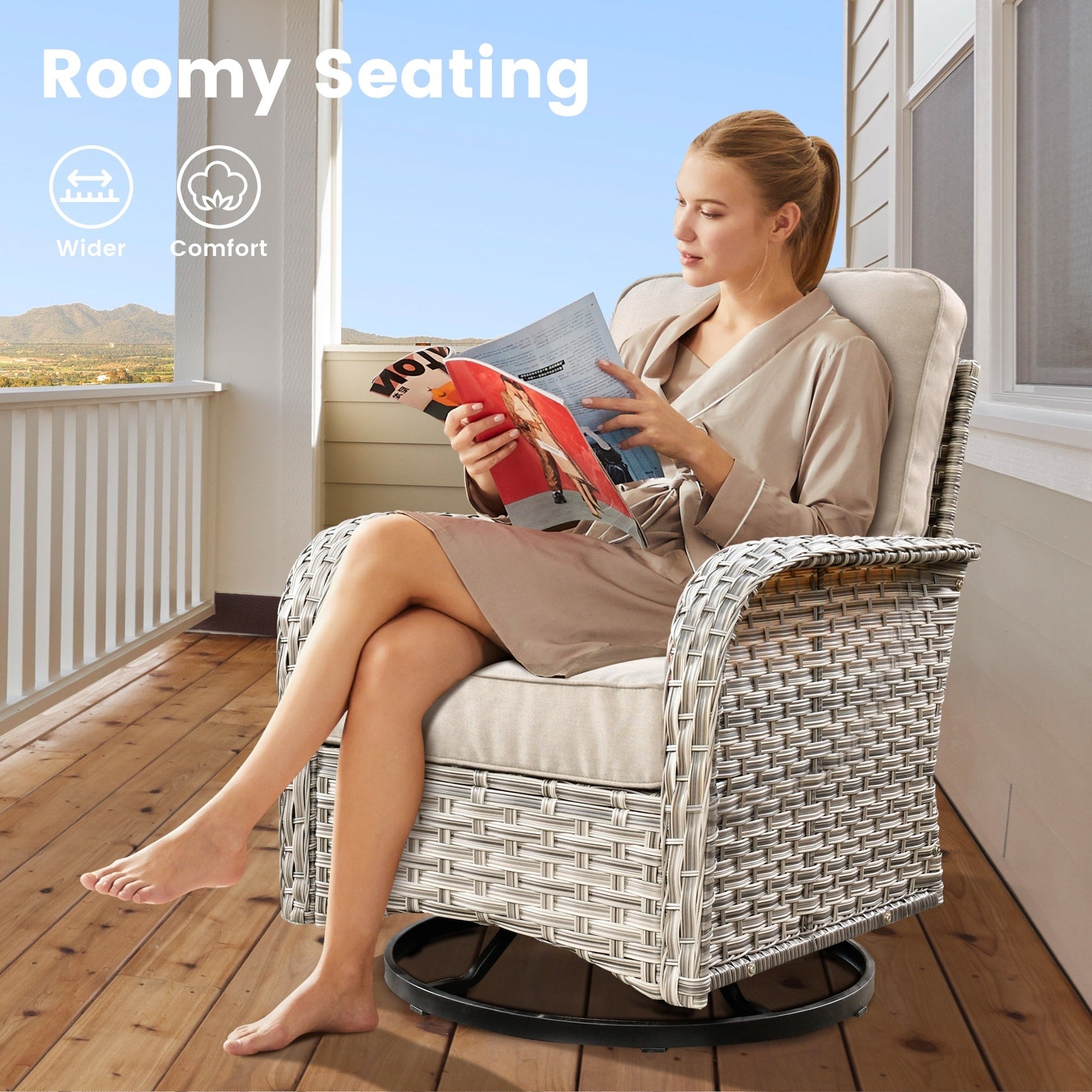 Ensemble de 9 chaises pivotantes d'extérieur en résine tressée OVIOS avec table de feu