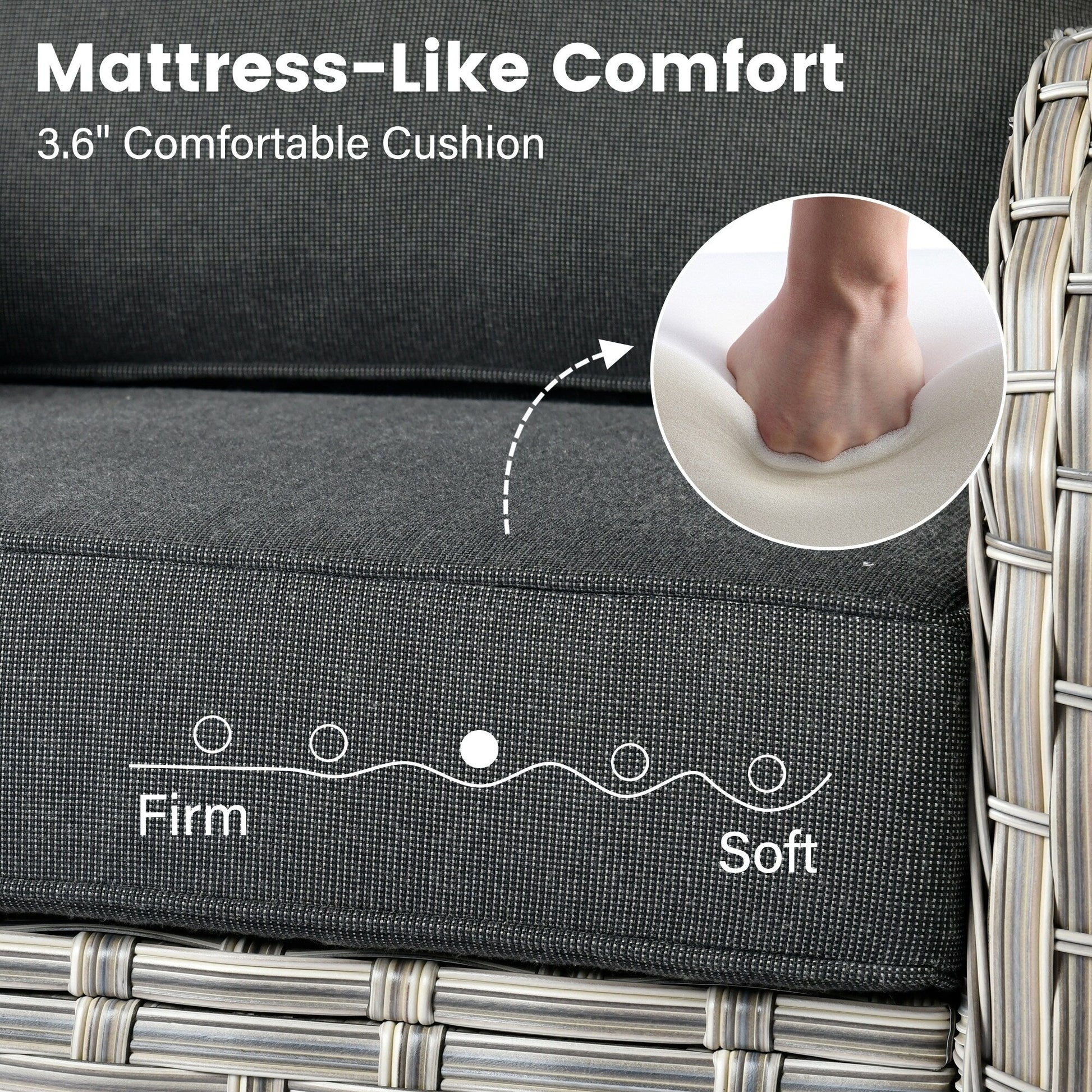 Sublimez vos moments de détente en plein air avec cet ensemble de mobilier de jardin haut de gamme en résine tressée, désormais agrémenté d'un élégant foyer en métal. Conçu pour allier style, confort et fonctionnalité, cet ensemble est idéal pour les réunions de famille, les fêtes en plein air ou les moments de détente. Il créera un cadre parfait pour toutes les occasions.