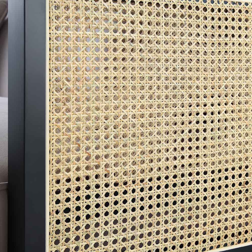 Canapé-lit Pienza en rotin, velours taupe avec cadre en bois massif noir