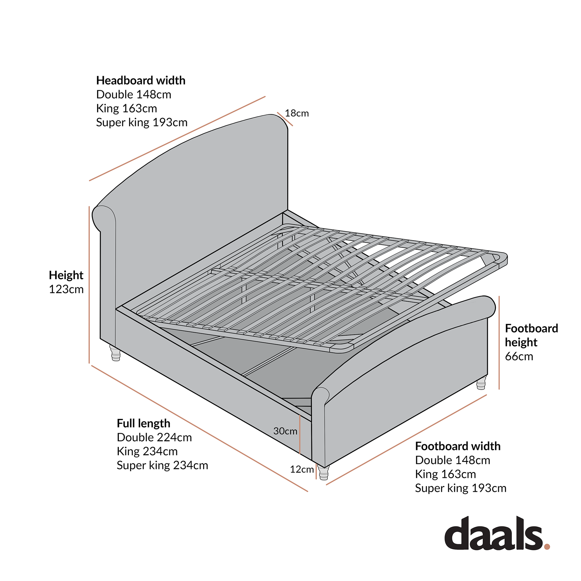 - Super King 6 pieds : L 193,0 x P 234,0 x H 123,0 cm