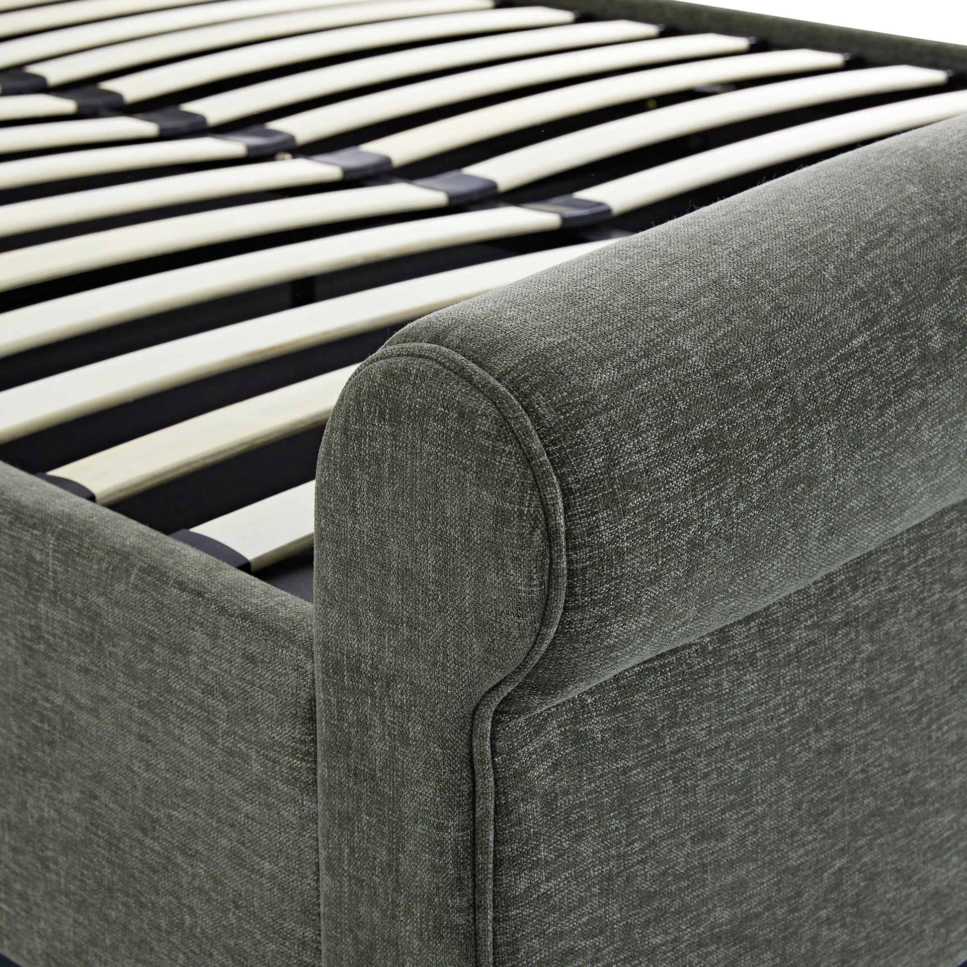 Lit traîneau avec rangement ottoman Porchester, chenille vert forêt