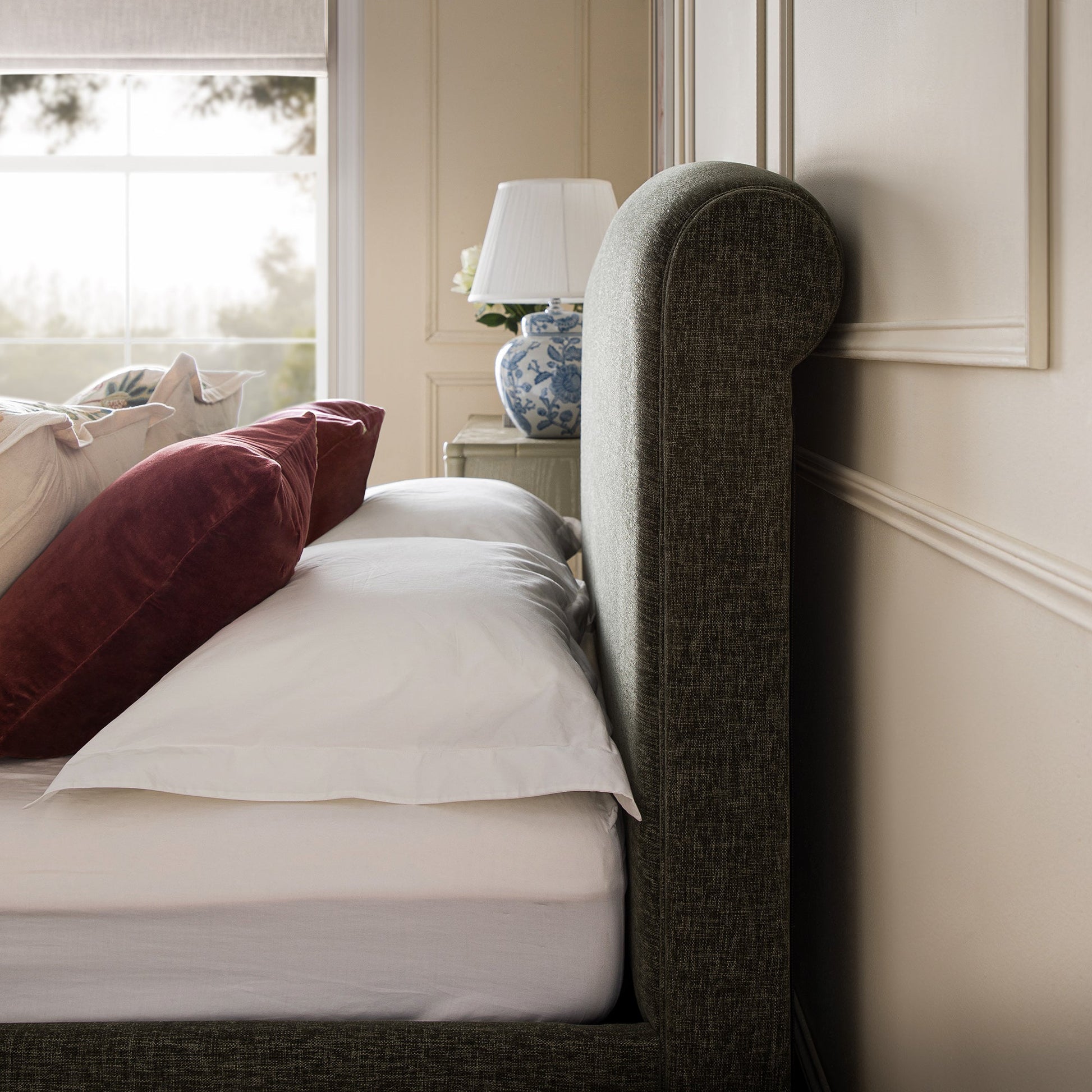- Défini par sa tête de lit légèrement arquée et son pied de lit élégamment roulé, le lit Porchester incarne le raffinement intemporel.