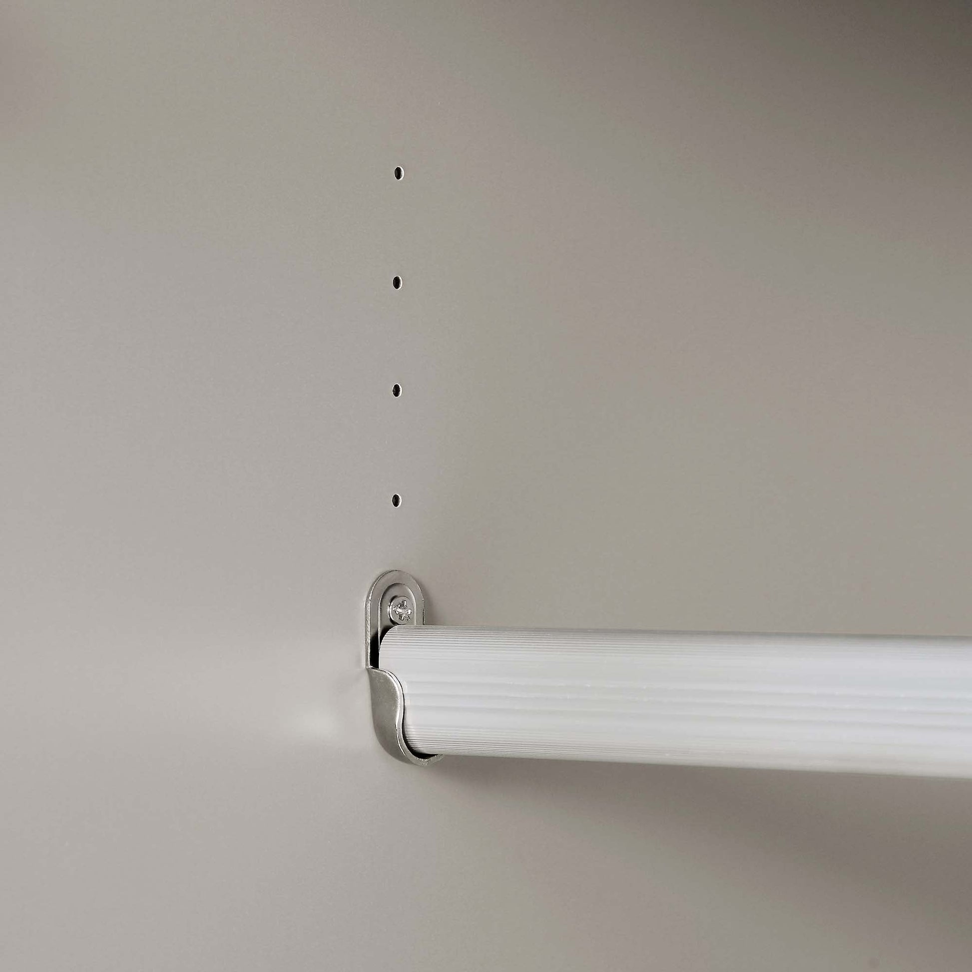 - Dotée d'une tringle de suspension ainsi que d'un tiroir spacieux sur glissières, l'armoire offre de nombreux espaces de rangement, ce qui en fait une solution de rangement élégante