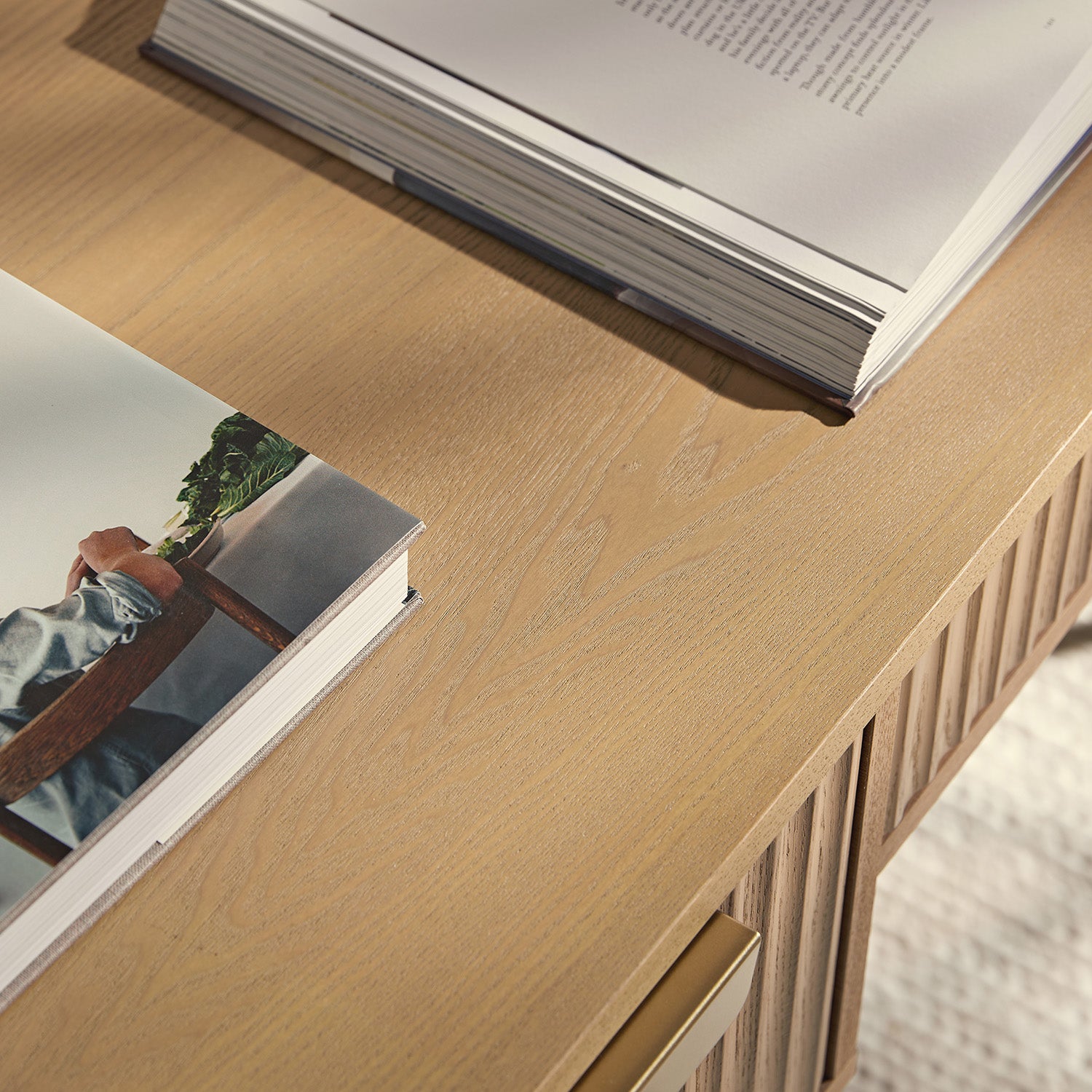 - Fabriquée en placage de frêne massif authentique, notre coiffeuse Richmond met en valeur le veinage naturel du bois et ses teintes chaleureuses et accueillantes ; chaque motif est unique. Contrairement aux placages en papier synthétique, qui imitent souvent le bois, notre placage de frêne offre une texture et une profondeur authentiques, apportant une touche d'élégance naturelle à votre intérieur.