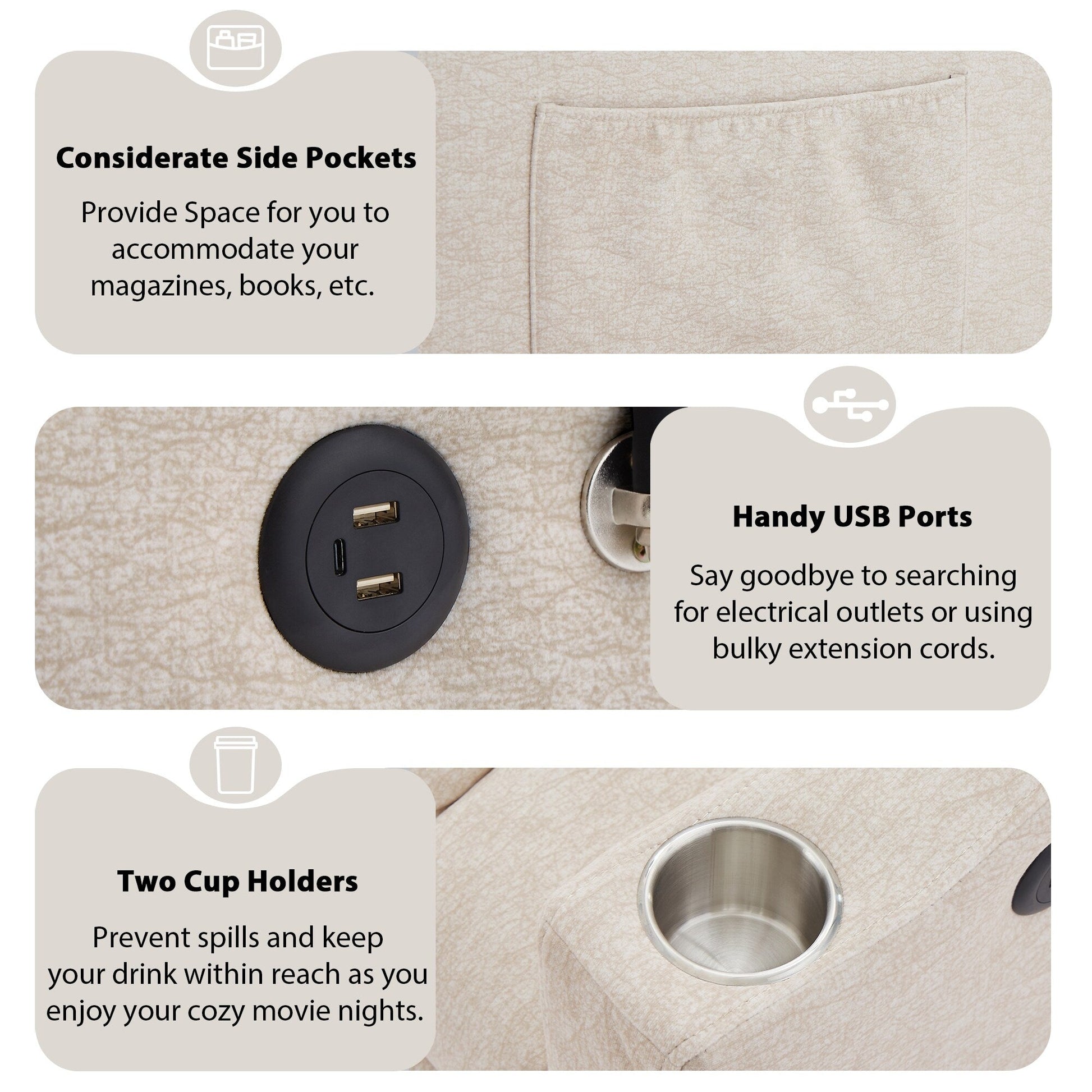 - Caractéristiques pratiques : Comprend 3 ports USB pour une recharge facile, 2 poches latérales de rangement et 2 porte-gobelets intégrés pour garder les boissons à portée de main sans risque de renversement.