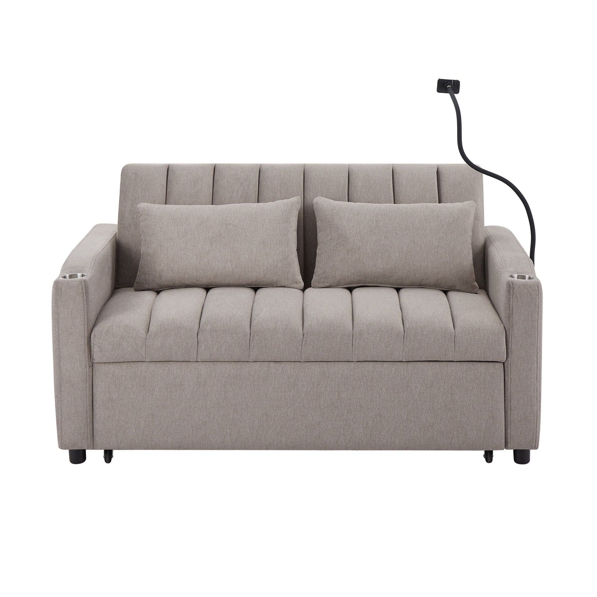 Canapé-lit convertible Roomfitters avec ports USB, poches latérales, porte-gobelets et support pivotant pour téléphone, idéal pour le salon.
