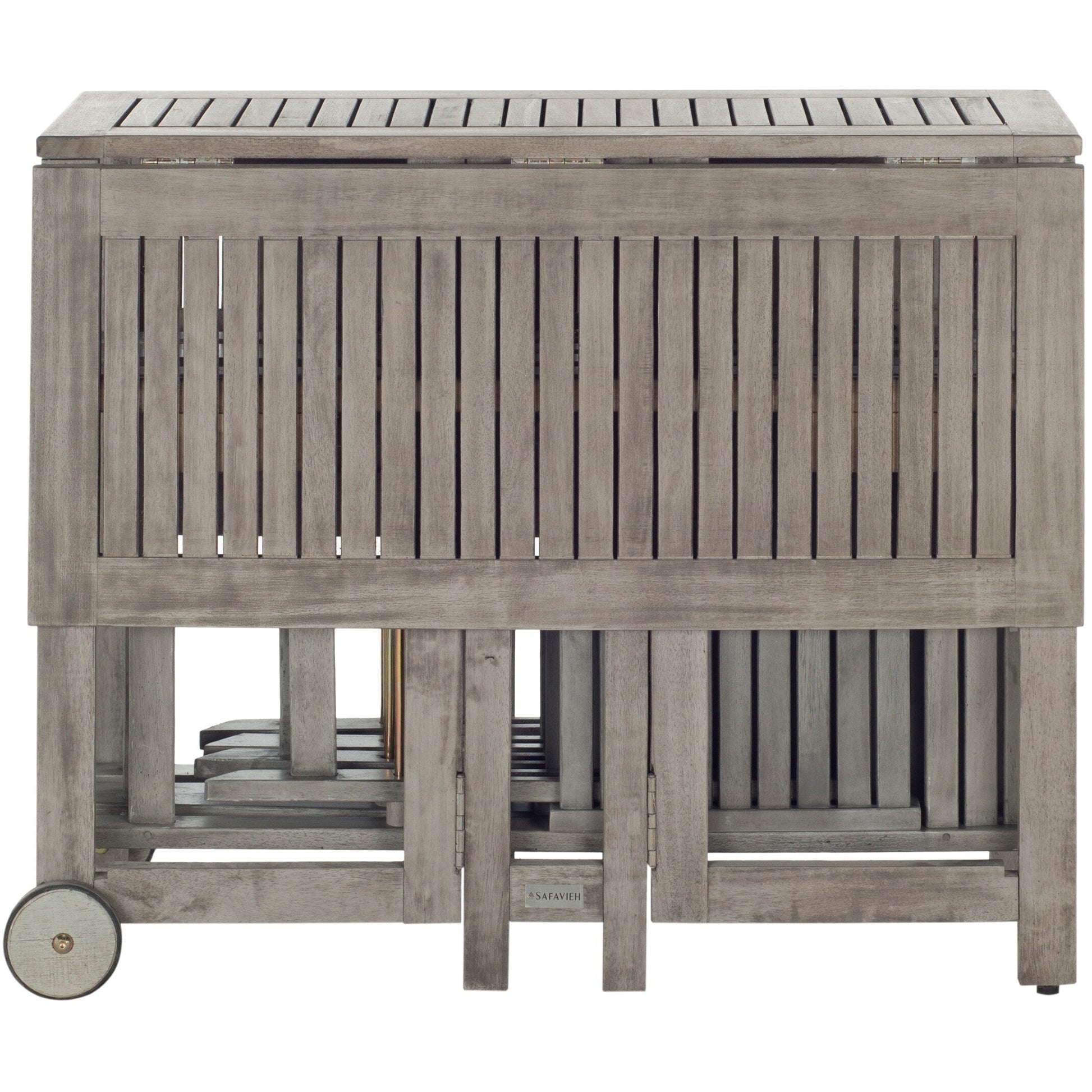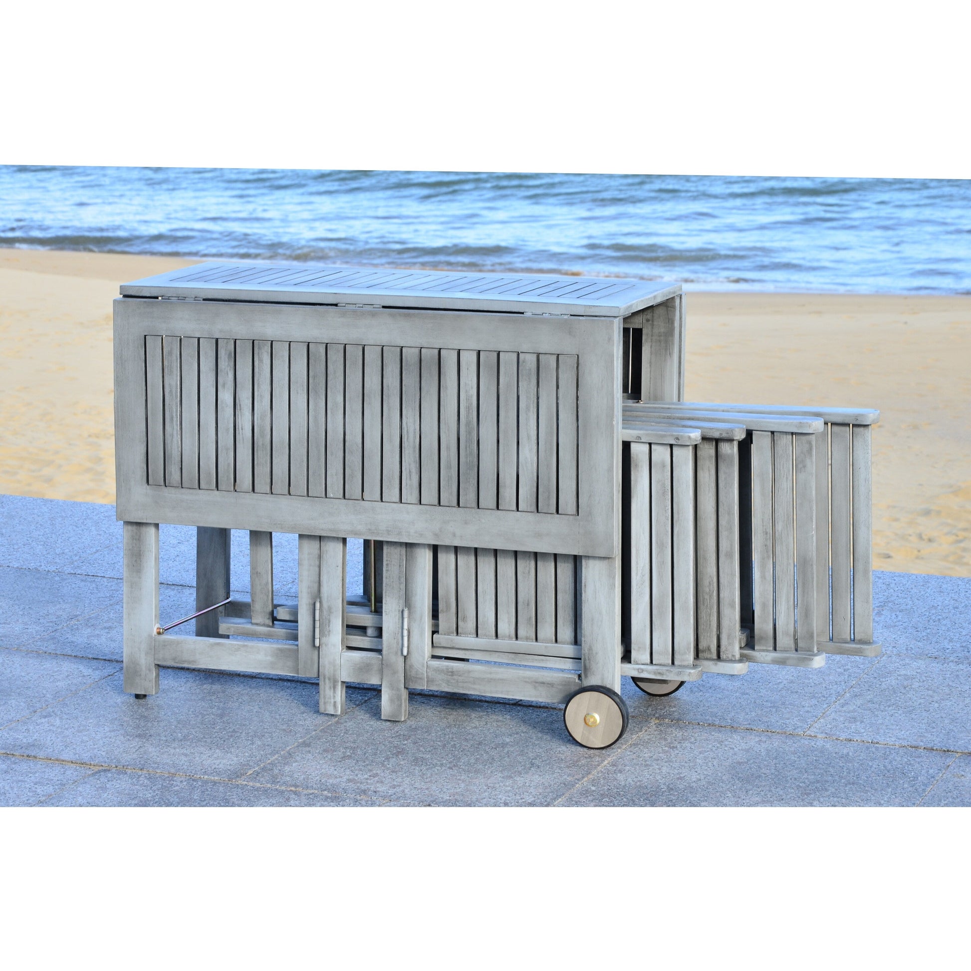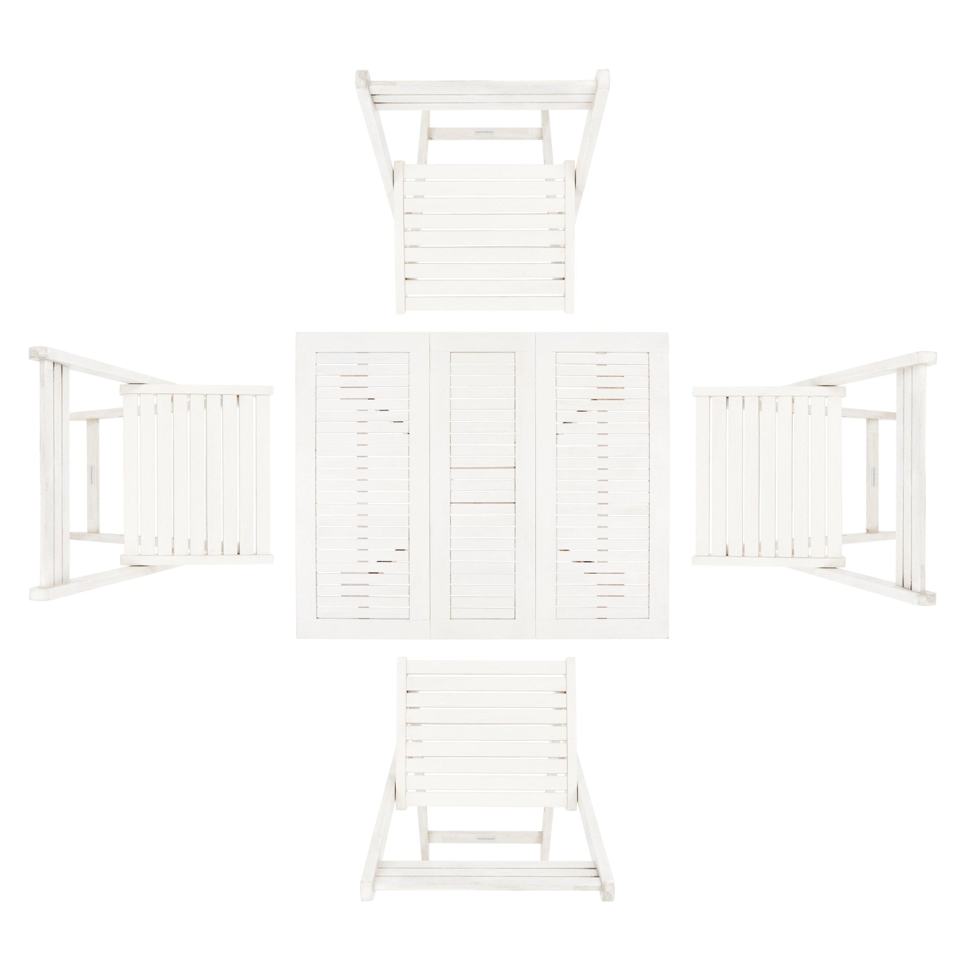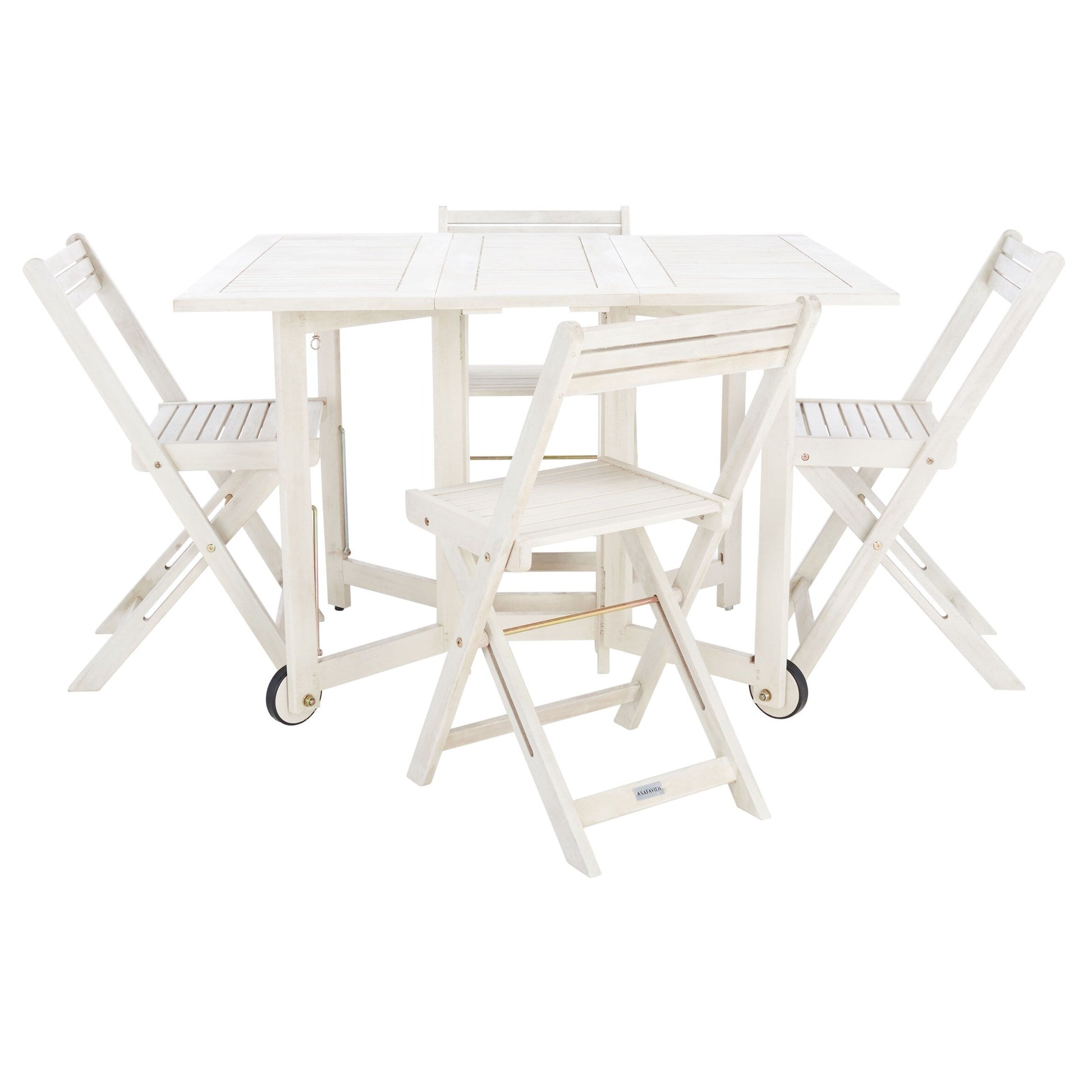 Cet ingénieux ensemble table et chaises de jardin, conçu pour optimiser l'espace, est idéal pour profiter pleinement de l'extérieur. Fabriqué en bois d'acacia écologique, il comprend quatre chaises de style réalisateur qui se replient et se rangent sous une table rectangulaire pliable pour un rangement facile.