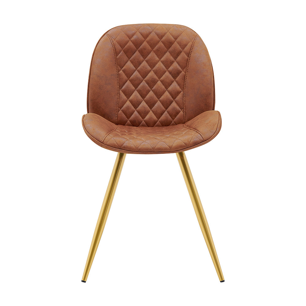 - Fabriquées avec un cadre en métal durable et des pieds en métal avec revêtement en poudre de couleur dorée, les chaises présentent des coutures en losange sur le dossier et l'assise pour un look glamour moderne.