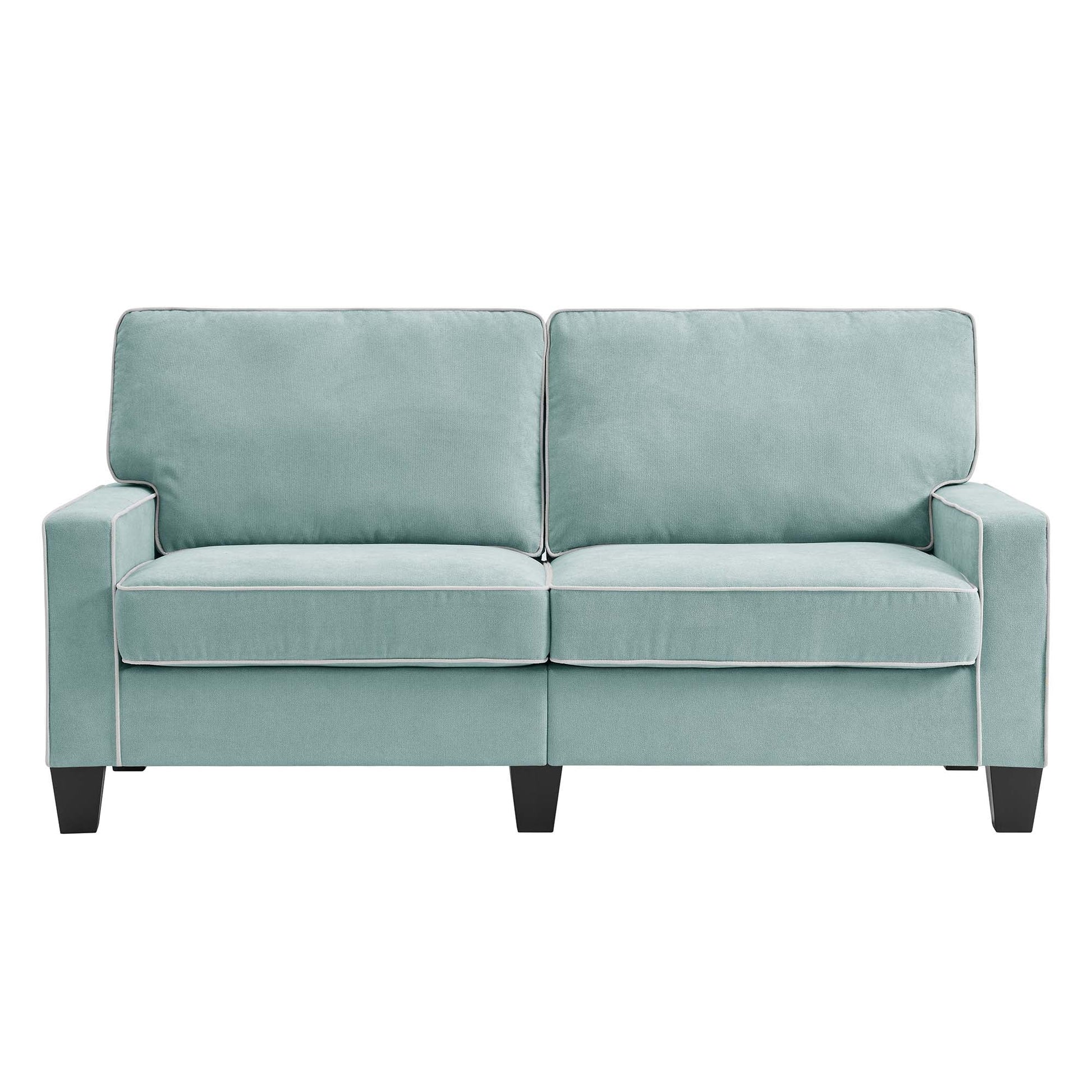 - Revêtu d'un tissu brossé confortable d'une couleur menthe rafraîchissante, ce canapé égayera tout intérieur chaleureux. Un passepoil blanc contrastant sublime sa silhouette élégante.