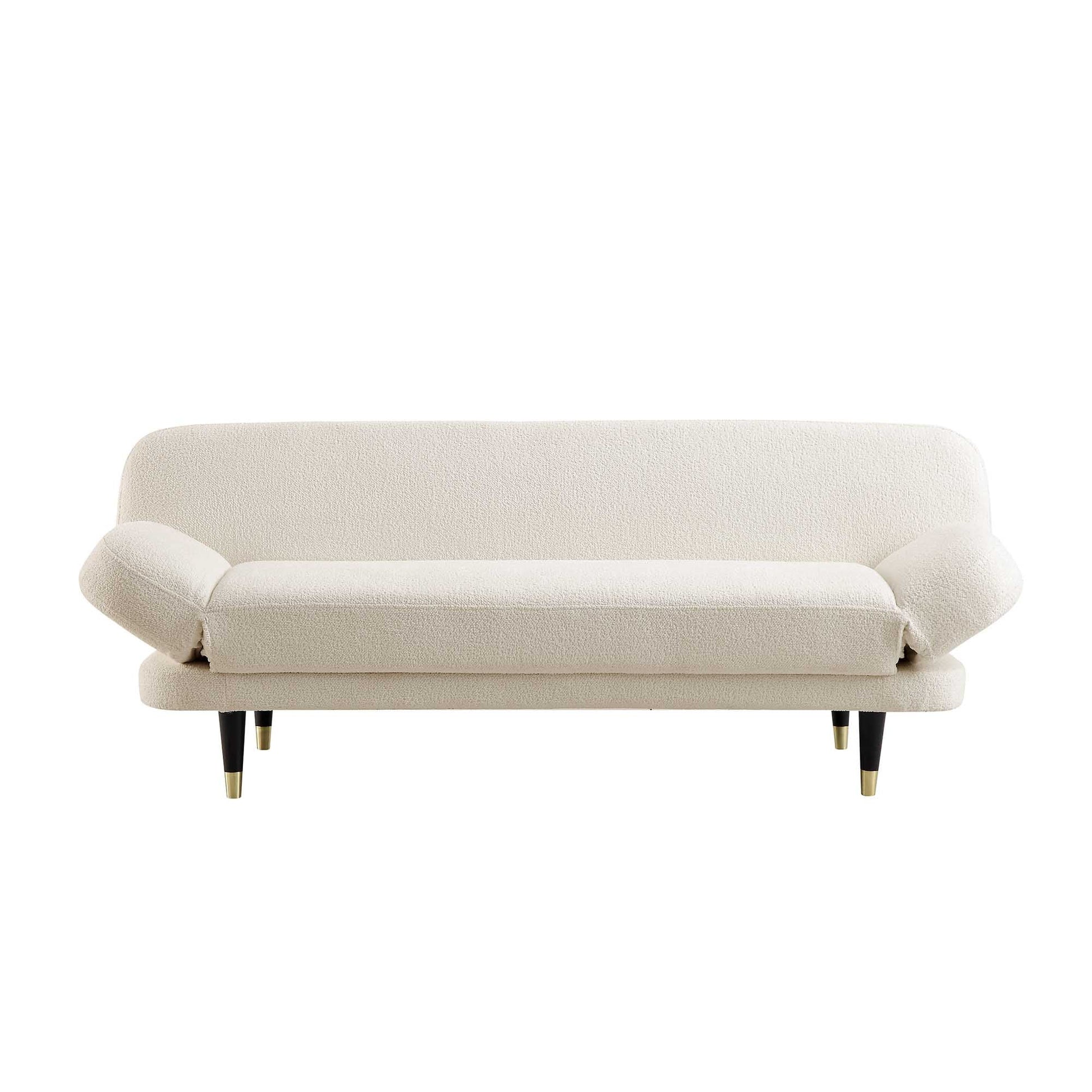- Recouvert d'un superbe tissu bouclé beige, notre canapé-lit Solna est soutenu par un cadre interne en bois massif, accentué de pieds en bois noir à pointes en laiton pour un look du milieu du siècle.
