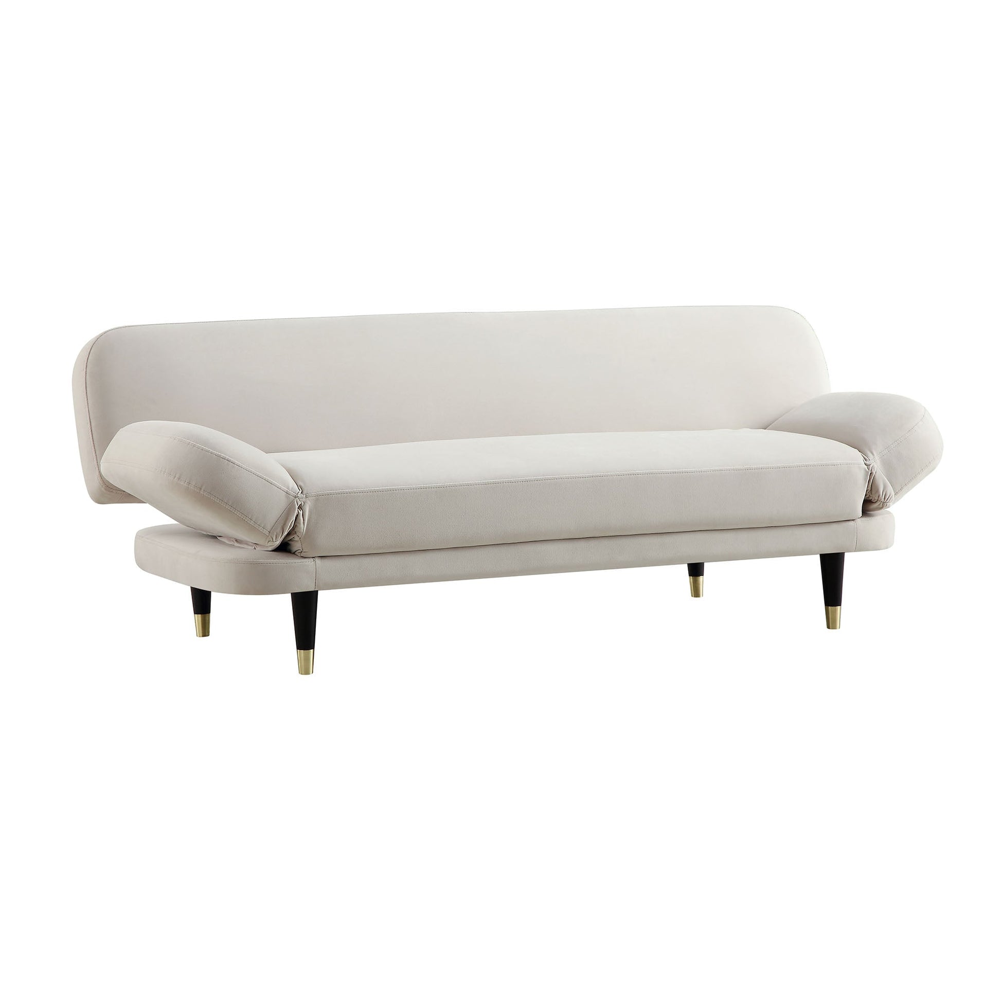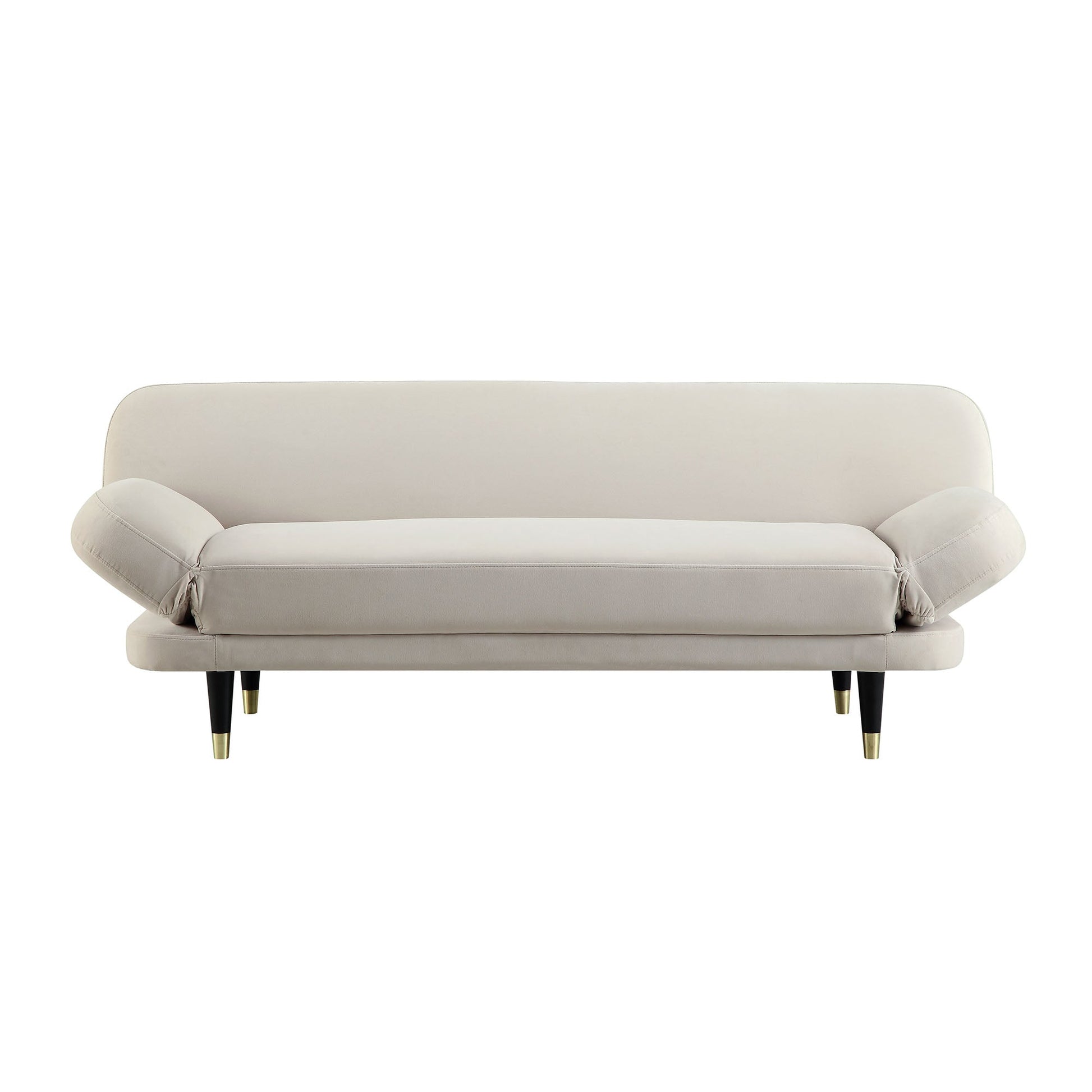 - Recouvert de velours doux couleur champagne, notre canapé-lit Solna est soutenu par un cadre interne en bois massif, accentué de pieds en bois noir à pointes en laiton pour un look du milieu du siècle.