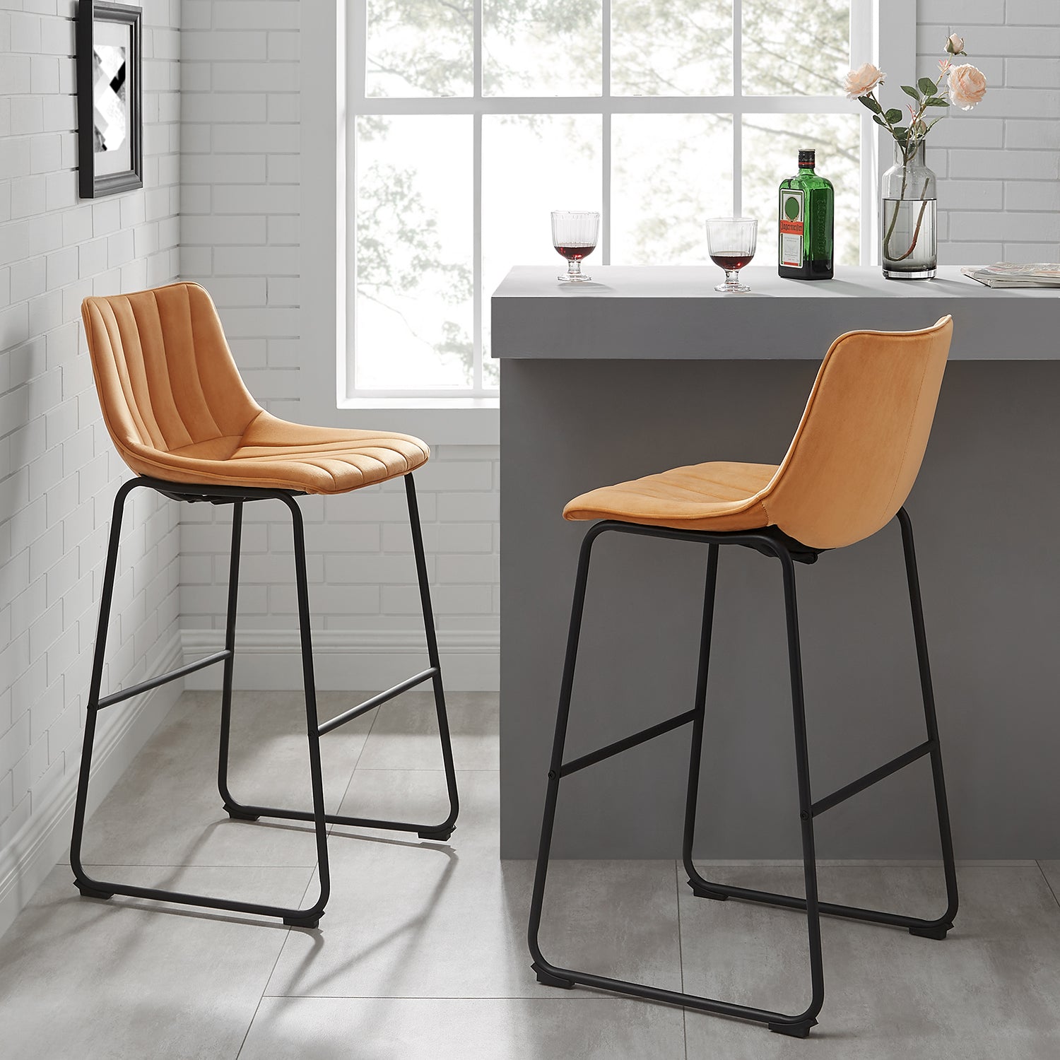 Ensemble de 2 tabourets de bar Sutton avec dossier cannelé (velours moutarde)