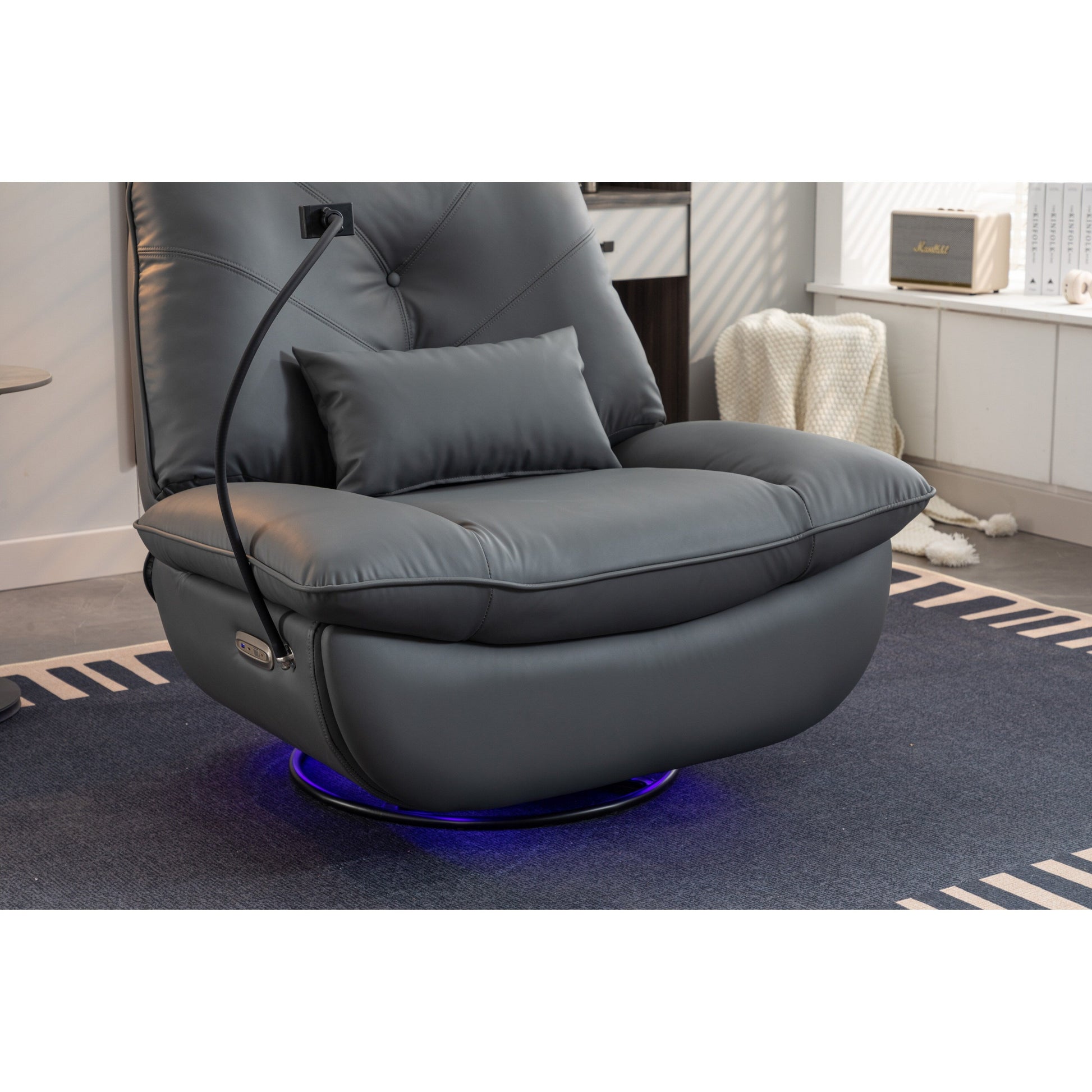 Fauteuil inclinable électrique pivotant avec haut-parleurs Bluetooth, support pour téléphone, ports de chargement USB et Type-C, rangement dissimulé dans l'accoudoir